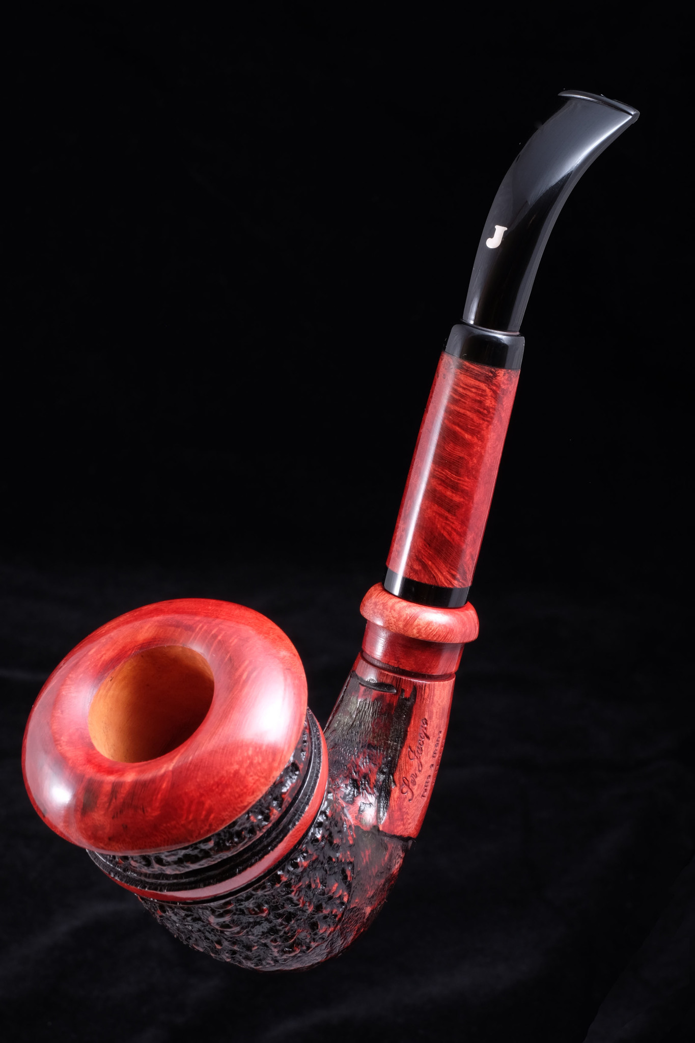 Итальянская трубка премиум класса. Художественно рустированная чашка. Кольцо на чубуке и декоративная вставка на мундштуке из бриара.