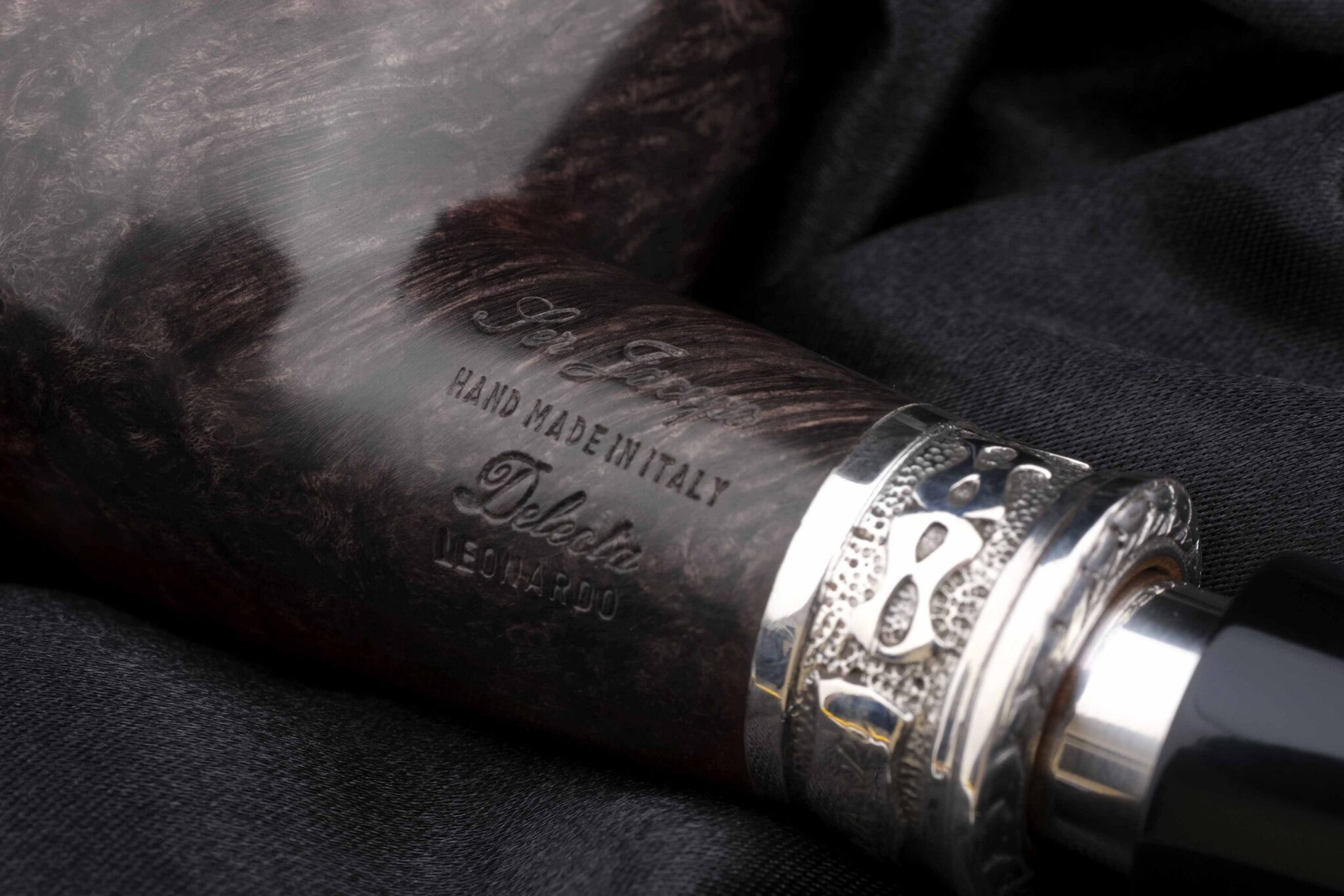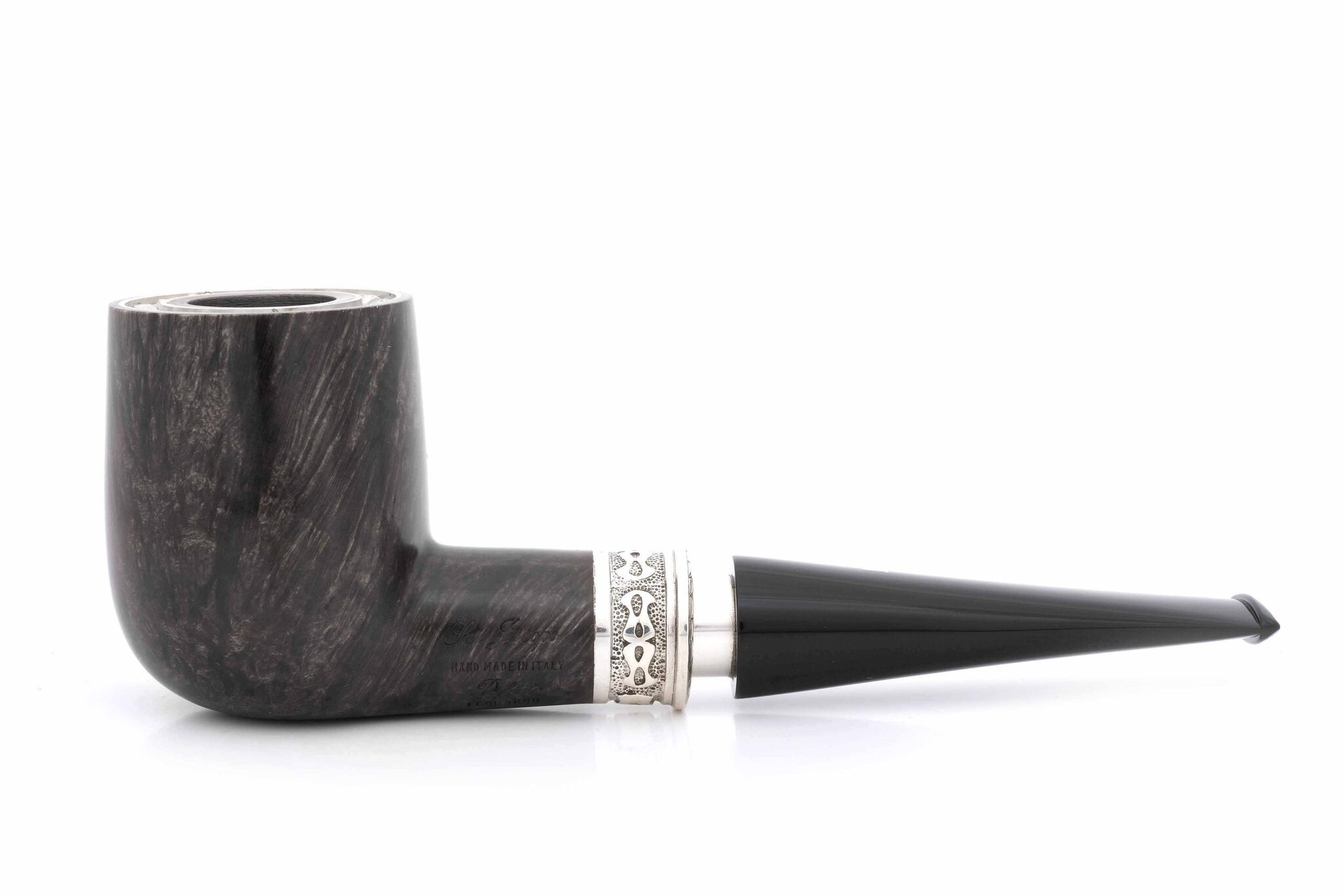 Авторская курительная трубка Ser Jacopo Leonardo оригинальной конструкции была создана Джанкарло Гуиди (Giancarlo Guidi) по мотивам работ Леонардо да Винчи. Известно, что Леонардо сделал для Тосканского герцога керамическую трубку с двойными стенками для прохладного курения. Джанкарло разработал аналогичную, но уже из бриара: в стенках чашки сделана кольцевая проточка, закрытая сверху серебряной крышкой с отверстиями для отвода тепла. Таким образом, двойные стенки с воздушной прослойкой сохраняют поверхность трубки комфортной для руки. Кольцо на чубуке модели Delecta из серебра с гравировкой Ser Jacopo и выбитой пробой 925. На чубуке снизу и по бокам выбит девиз мастерской PER ASPERA AD ASTRA ("Через тернии к звездам", лат.), маркировки: Ser Jacopo, Hand made in Italy, градация L1, серия Delecta Leonardo. Фильтр 9 мм. Вес 95 грамм. Длина трубки 16 см. Диаметр табачной камеры 20 мм., глубина 45 мм. В комплекте итальянская подарочная шкатулка в черном глянцевом лаке, кисет для трубки и буклеты компании Ser Jacopo. Ручная работа.