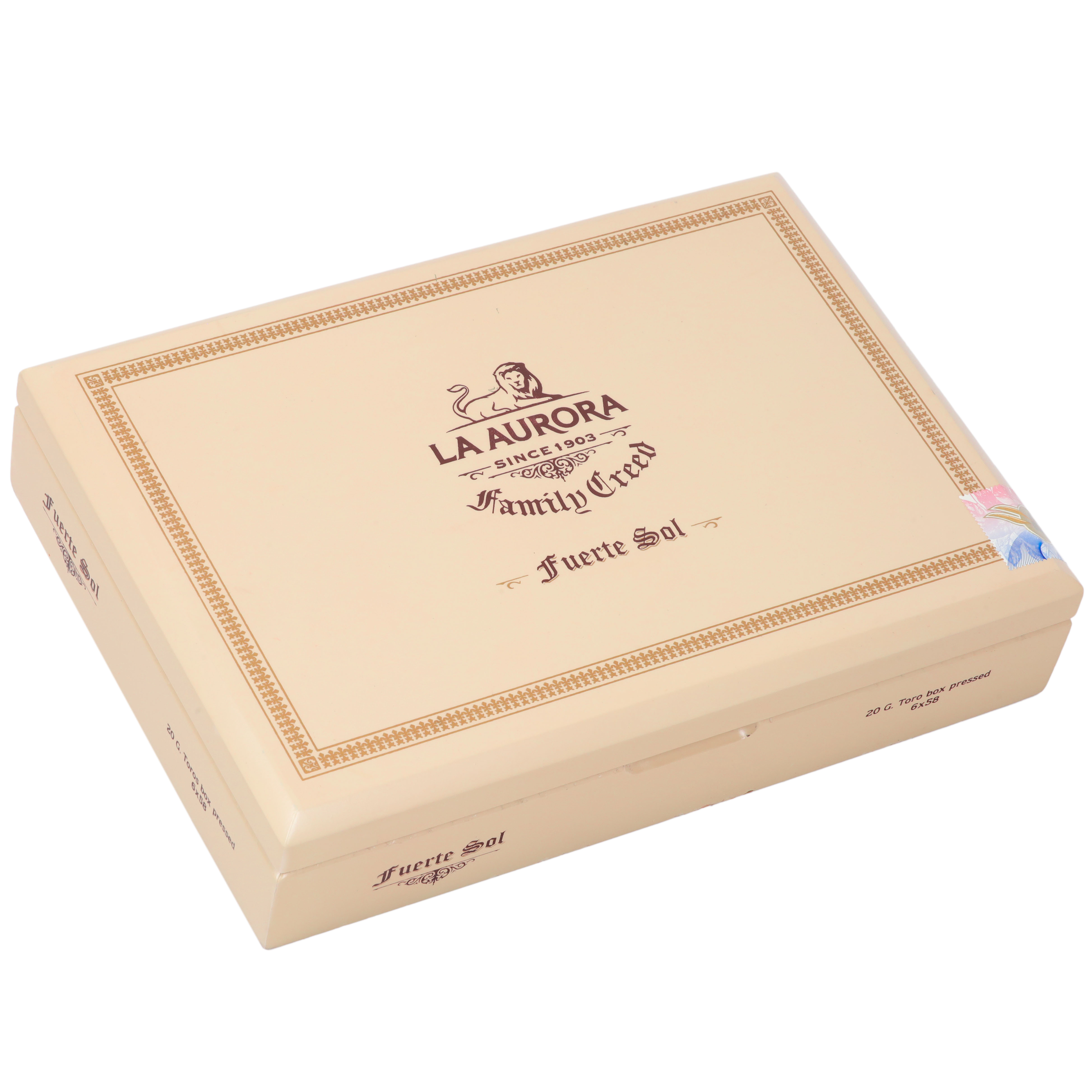 Сочетание мастерства La Aurora и отборных табачных листьев создает идеальный баланс, глубину и многогранность Fuerte Sol.