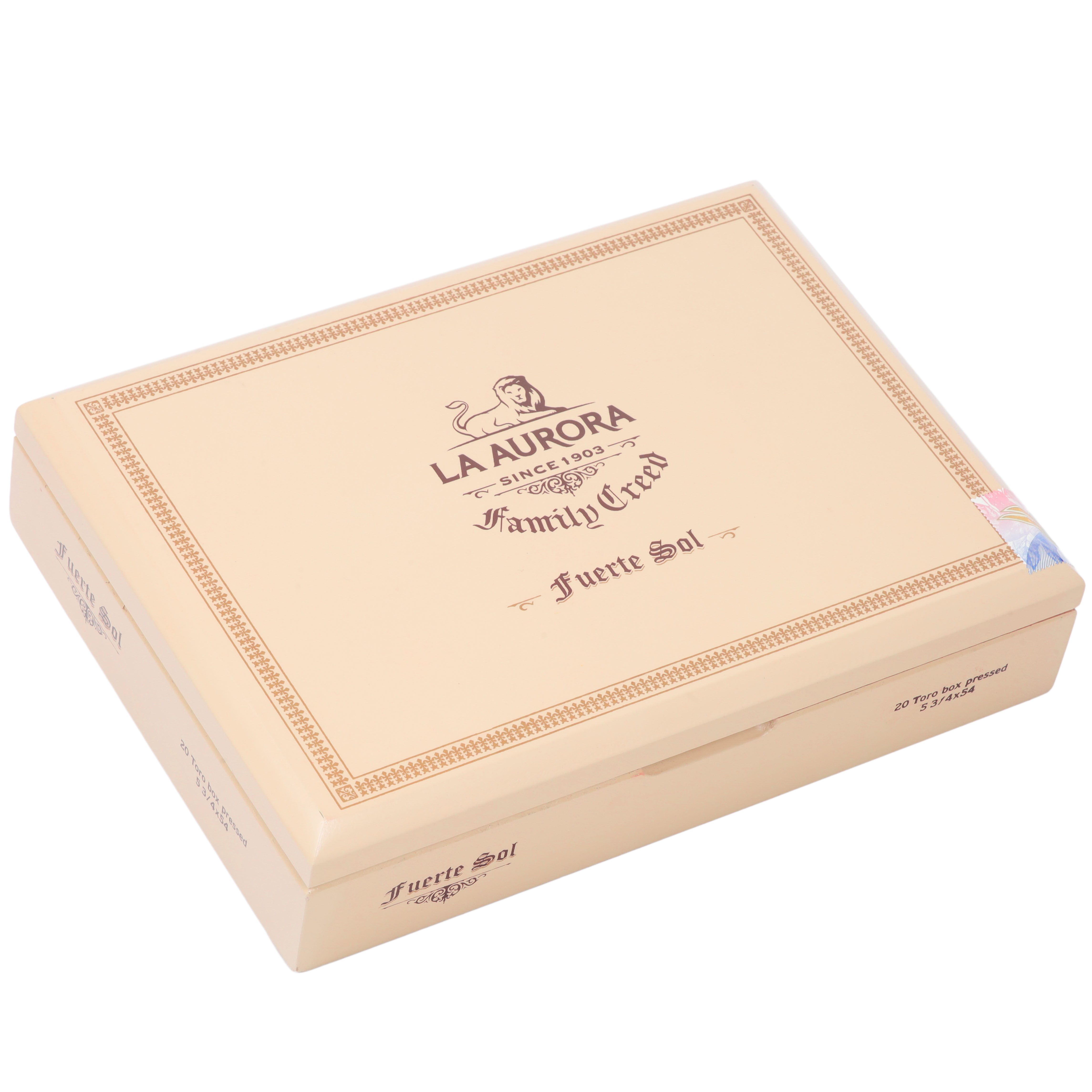 Сочетание мастерства La Aurora и отборных табачных листьев создает идеальный баланс, глубину и многогранность Fuerte Sol.