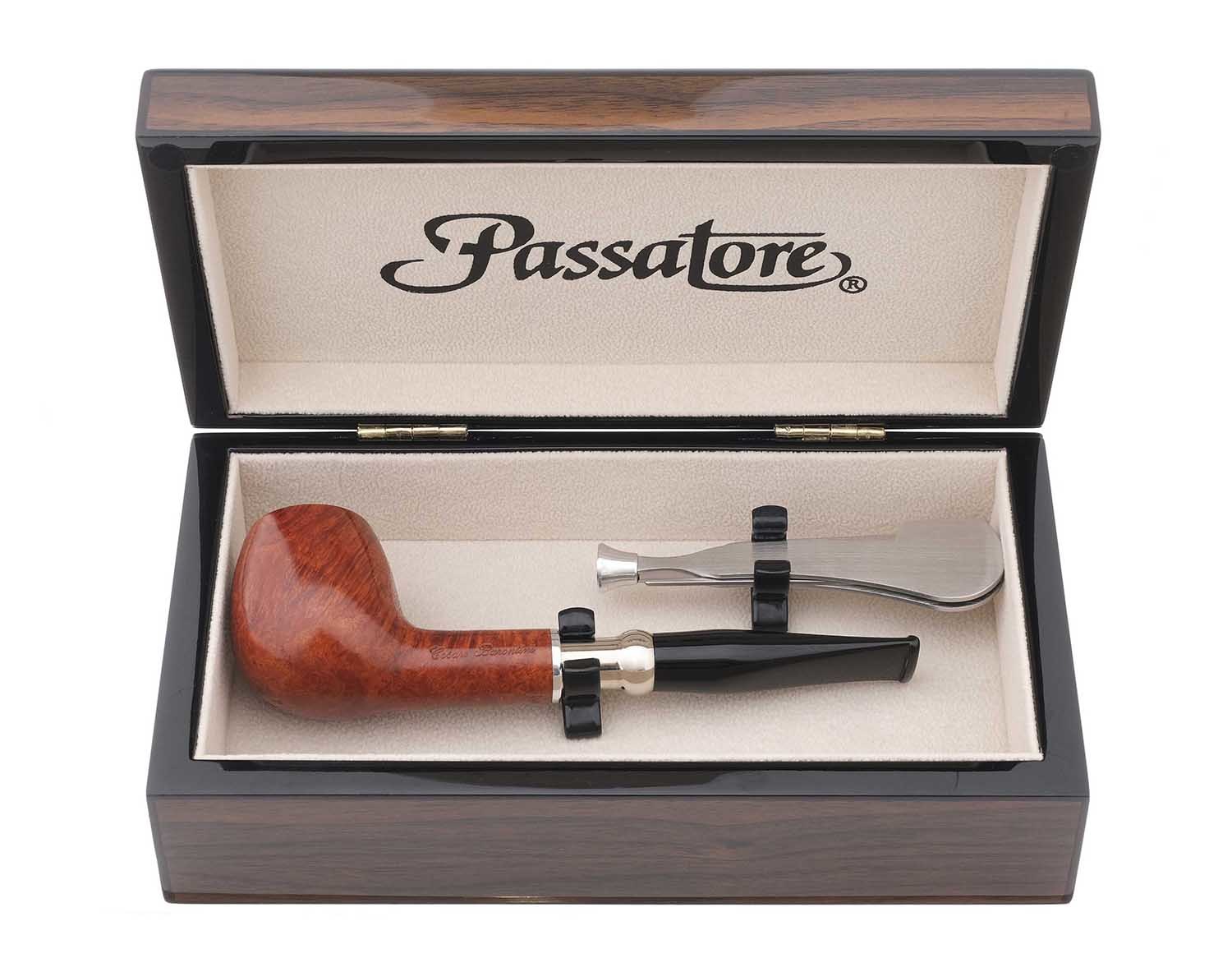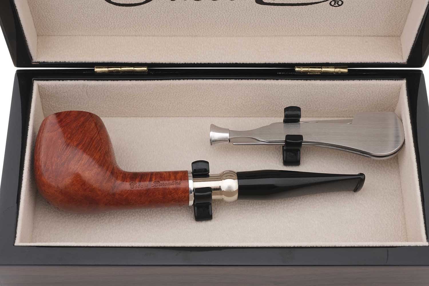 Премиальный подарочный набор немецкой марки Passatore. В ореховой шкатулке трубка от итальянской мастерской Cesare Barontini из Ливорно и тампер-тройник из металла для ухода за трубкой.
