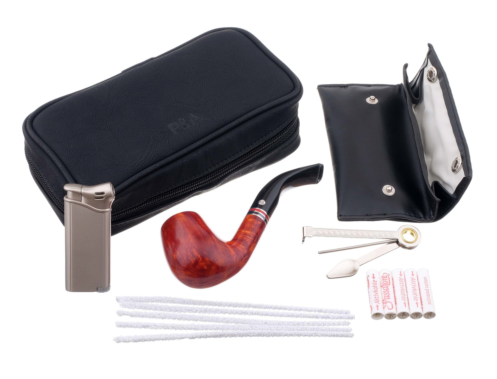 6. Набор фирменных угольных фильтров и ершей Passatore для ухода за трубкой.