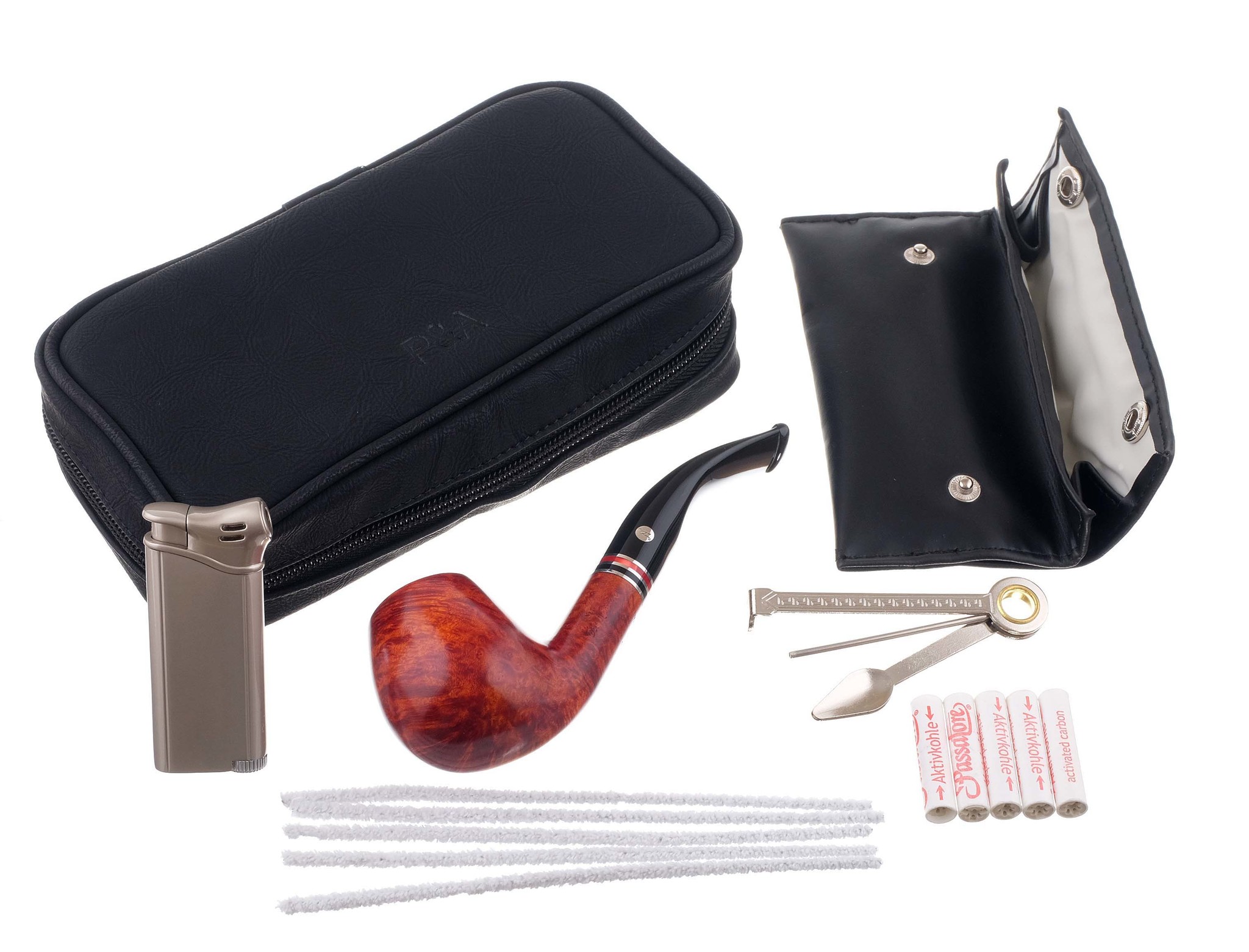 6. Набор фирменных угольных фильтров и ершей Passatore для ухода за трубкой.