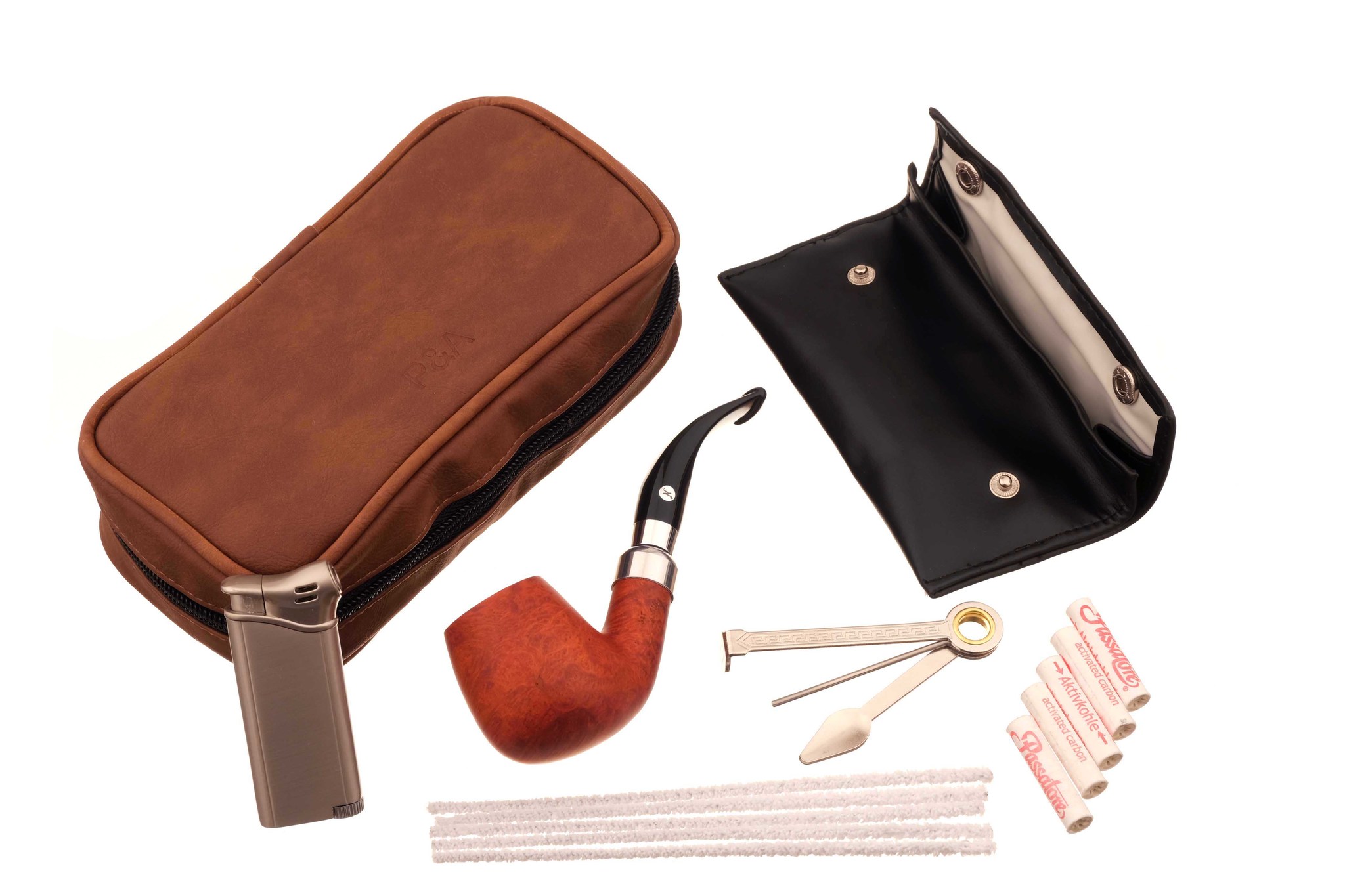 6. Набор фирменных угольных фильтров и ершей Passatore для ухода за трубкой.