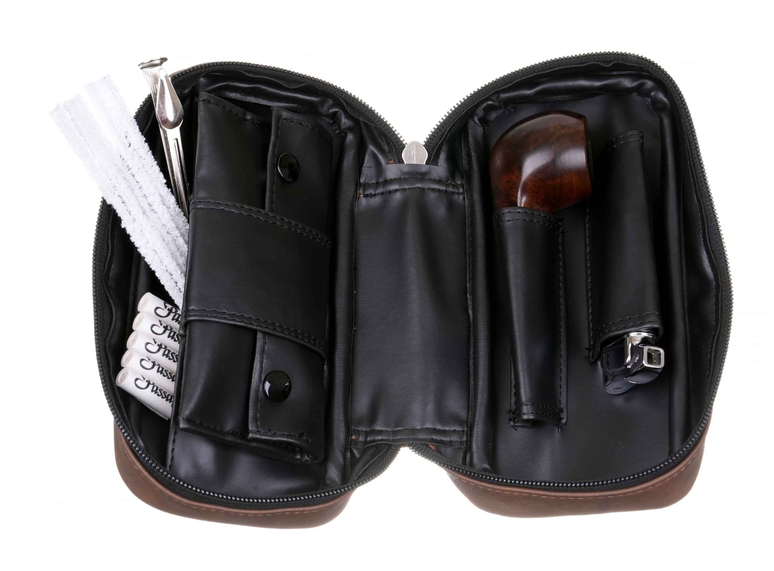 2. Кожаная сумка на 2 трубки с отделениями для аксессуаров. Размер сумки: 20 х 10 х 6,5 см.