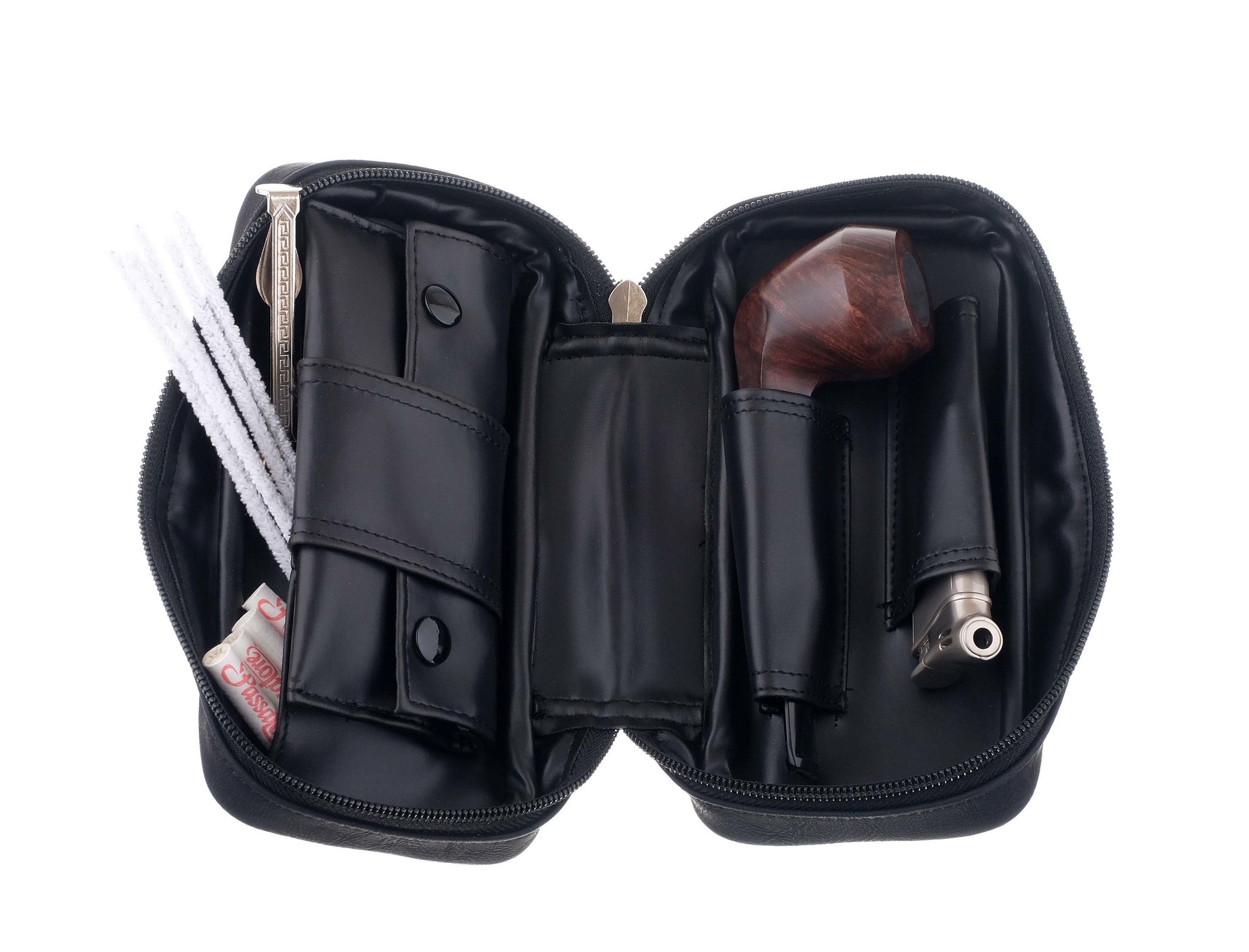 1. Кожаная сумка на 2 трубки с отделениями для аксессуаров. Размер сумки: 20 х 10 х 6,5 см.