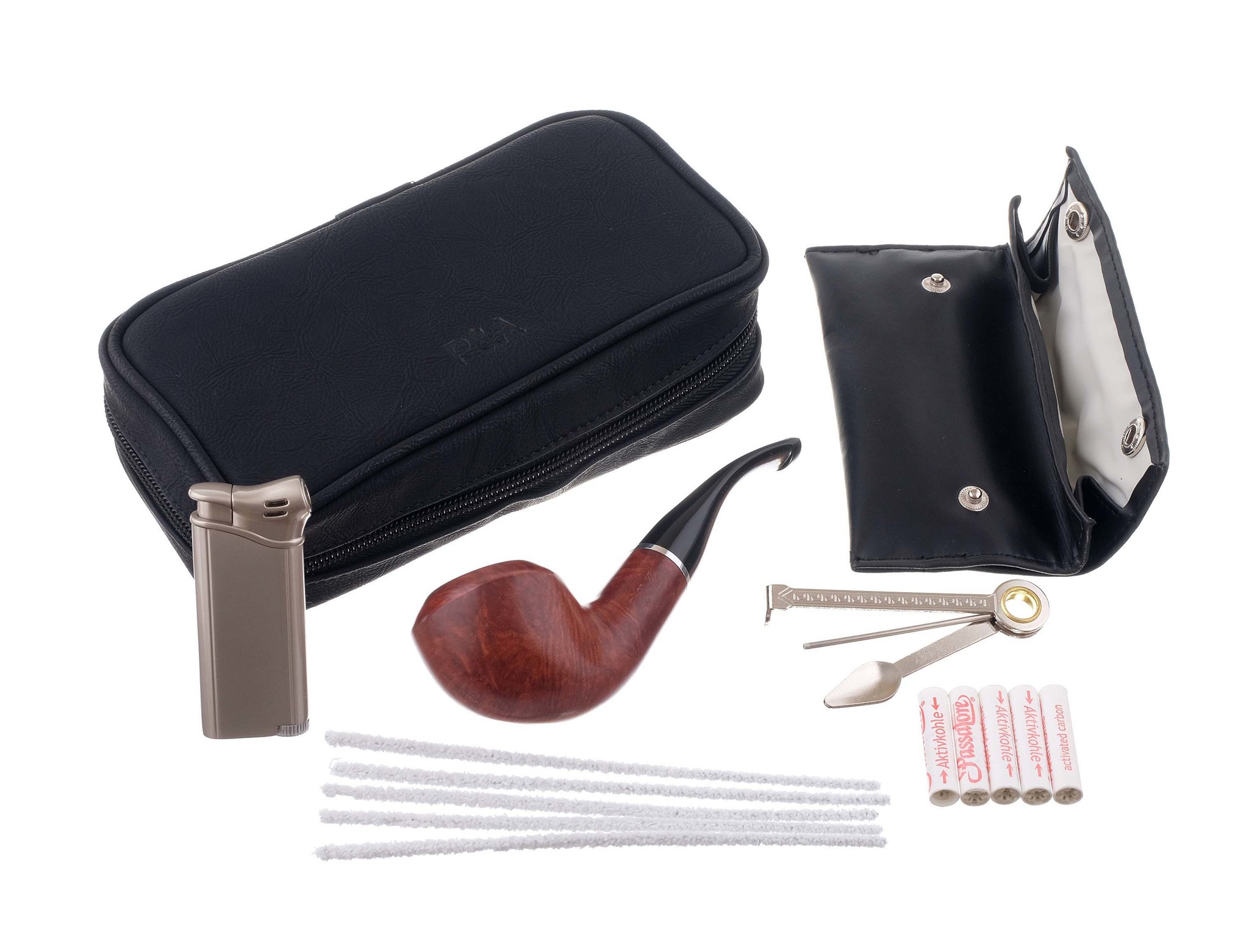 6. Набор фирменных угольных фильтров и ершей Passatore для ухода за трубкой.