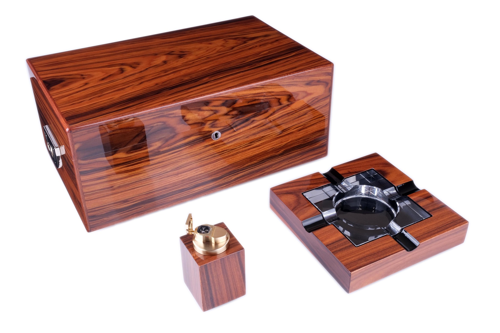 Настольный набор сигарных аксессуаров производства американской компании Howard Miller, состоящий из хьюмидора для хранения сигар, элегантной пепельницы и зажигалки. Идеальный подарок для любого ценителя сигар.