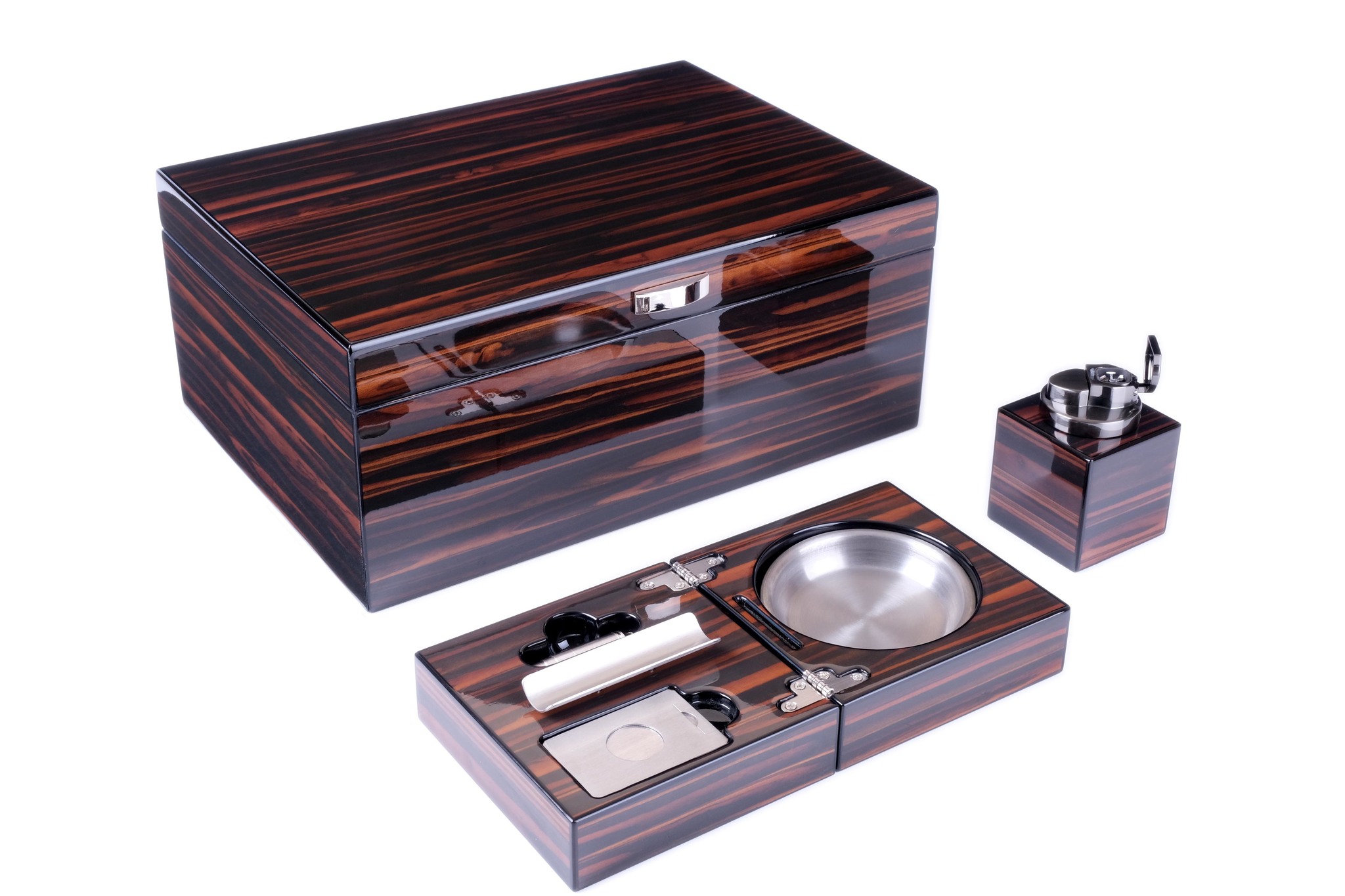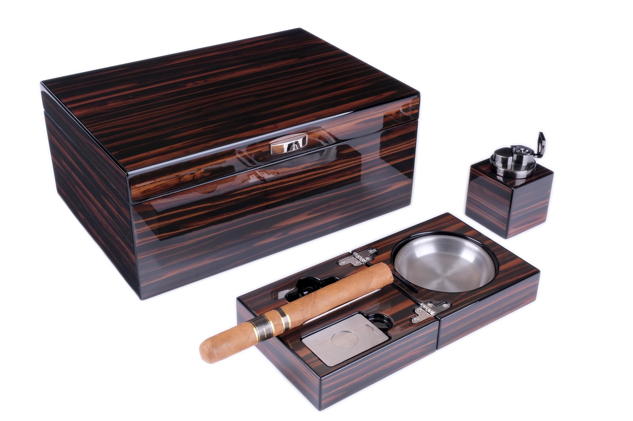 Настольный набор сигарных аксессуаров от итальянской компании Lubinski SRL, состоящий из: хьюмидора для хранения сигар, элегантной настольной пепельницы, мощной турбо-зажигалки с 4-мя форсунками, сигарных гильотины и пробойника.