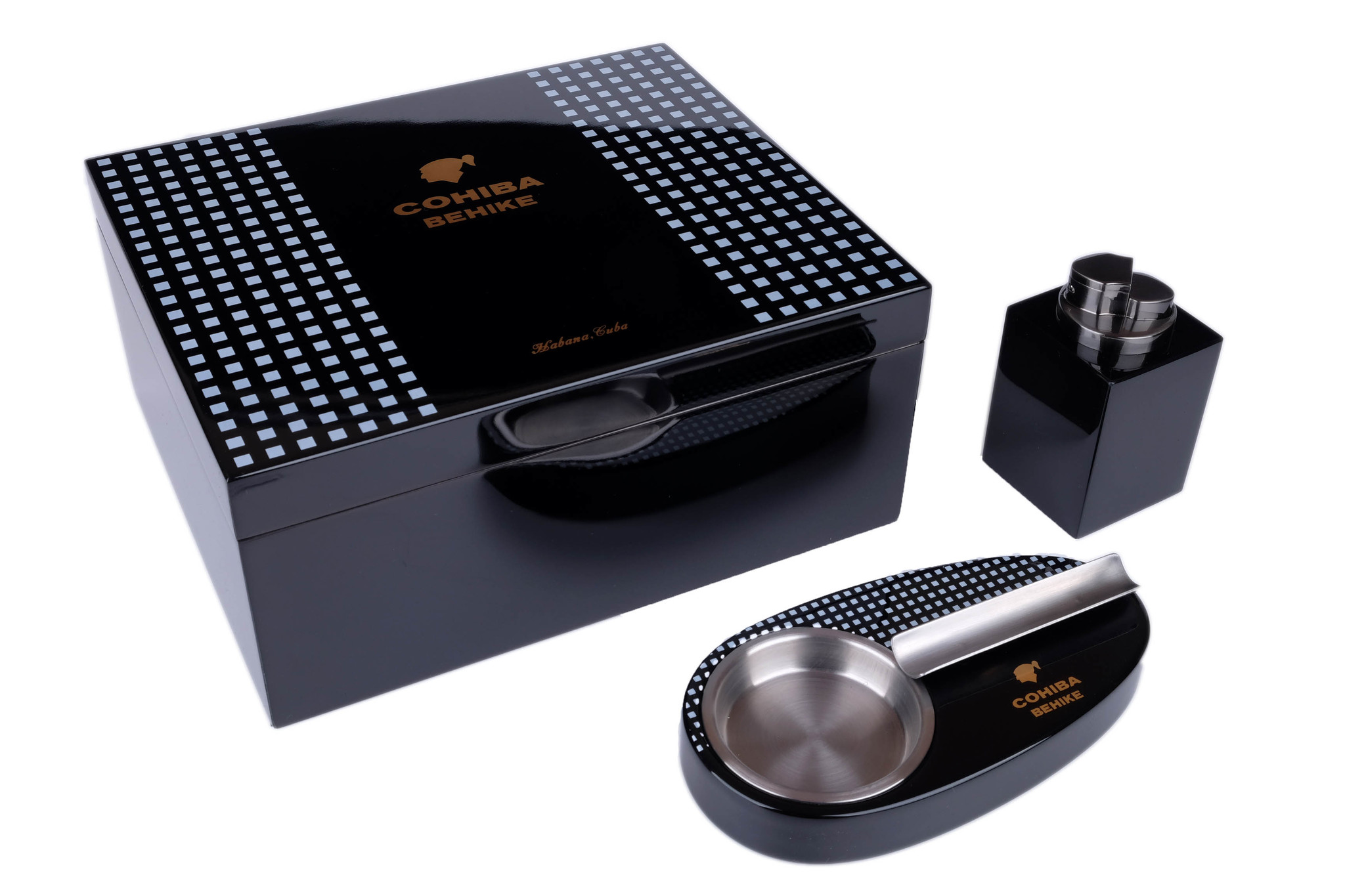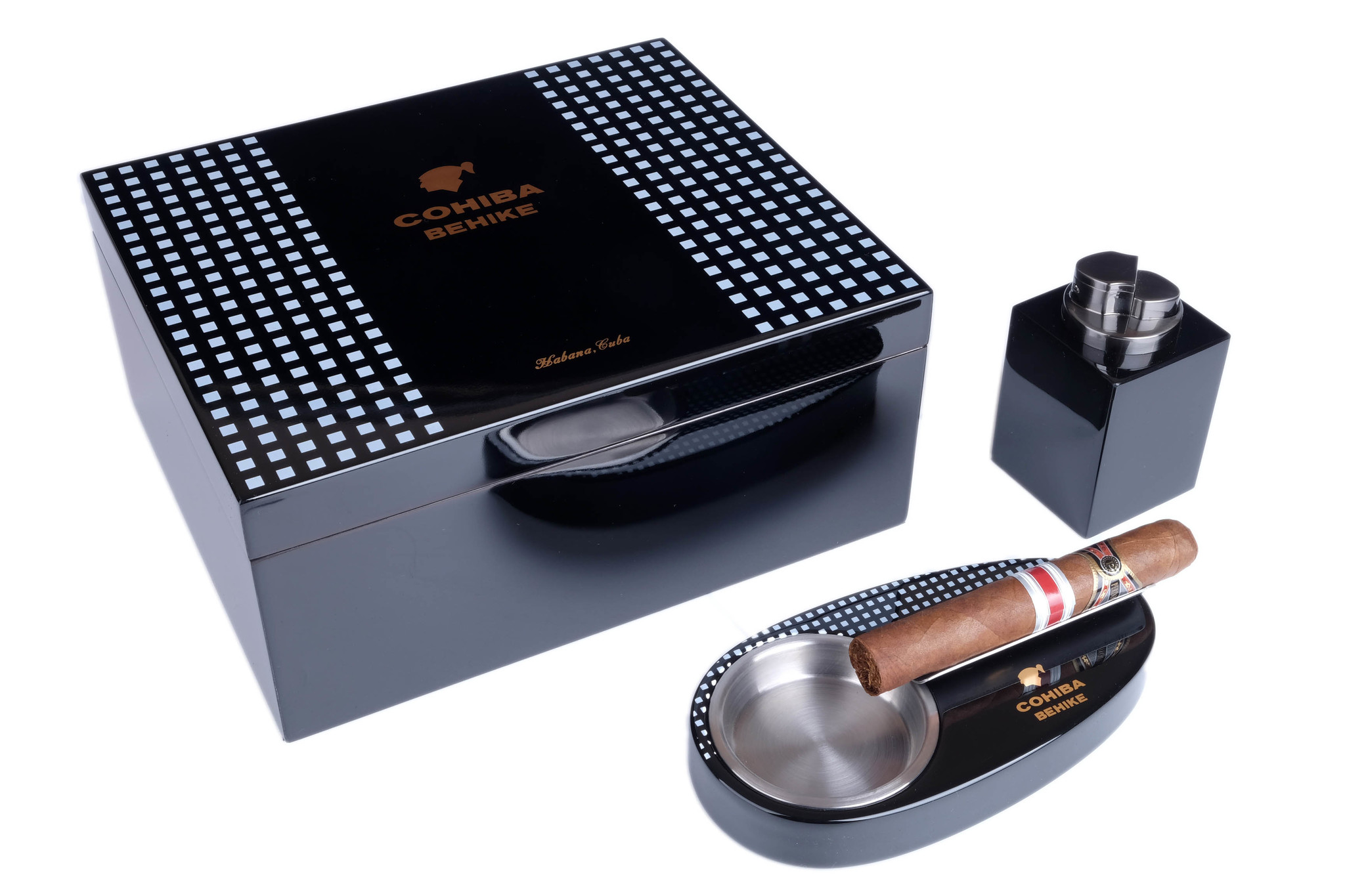 Все предметы выполнены в фирменных цветах сигной марки Cohiba Beike. Внутренняя отделка хьюмидора испанский кедр из Латинской Америки. В комплекте увлажнитель с биогубкой, гигрометр, инструкция по уходу и эксплуатации на русском и английском языках.