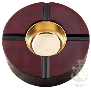 Пепельница круглой формы для четырёх сигар с отделкой под красное дерево.