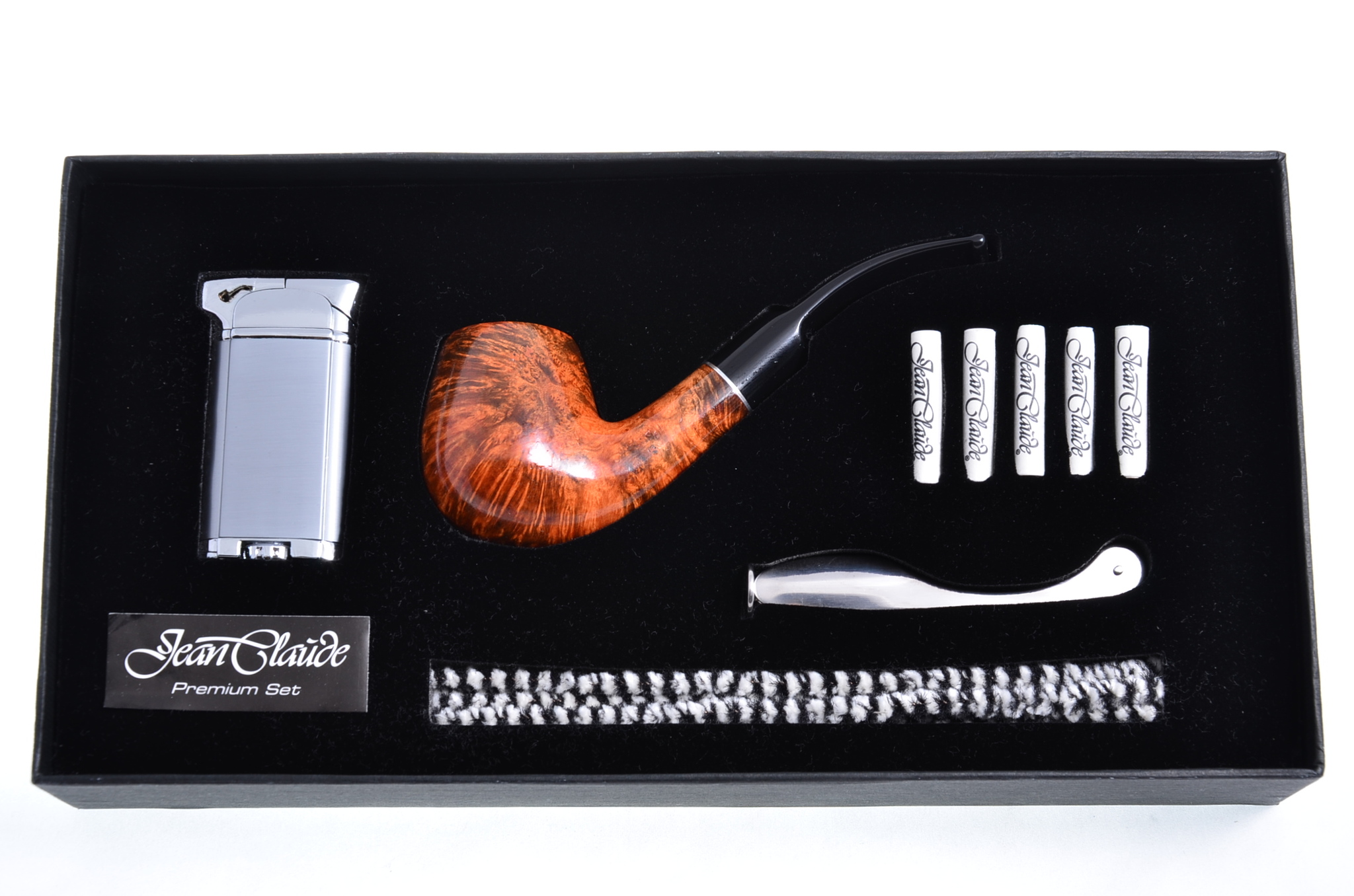 состоящий из высококачественных предметов: итальянской трубки, специальной трубочной зажигалки, тампера, фильтров 9 мм и комплекта ершиков для чистки трубки. Идеальный вариант как для начинающих, так и для опытных трубокуров. Стильная подарочная упаковка.