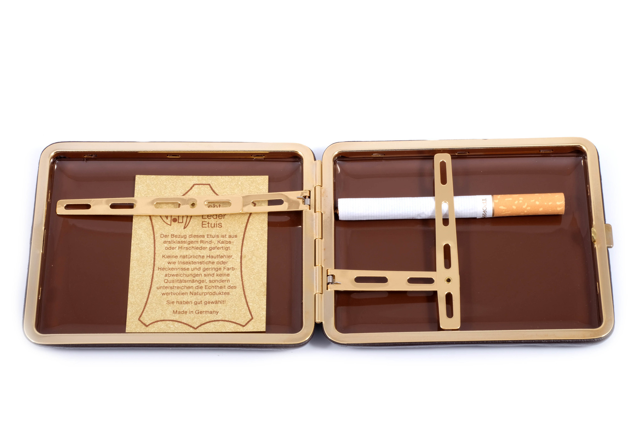 Портсигар от известного производителя курительных аксессуаров из Германии — компании Stoll GmbH (город Фассберг). Все изделия данного производителя отличаются отменным немецким качеством, лучшими материалами и изысканным дизайном. Данный портсигар является идеальной альтернативой бумажной сигаретной пачке и не позволит вашим сигаретам помяться (или даже сломаться) в кармане. Вы получите огромное удовольствие от повседневного пользования этим продуктом. Портсигар легко закрывается простым захлопыванием одной рукой, для этого, закрывая его, слегка нажимайте большим пальцем на крышку портсигара в районе замка по направлению к защелке.