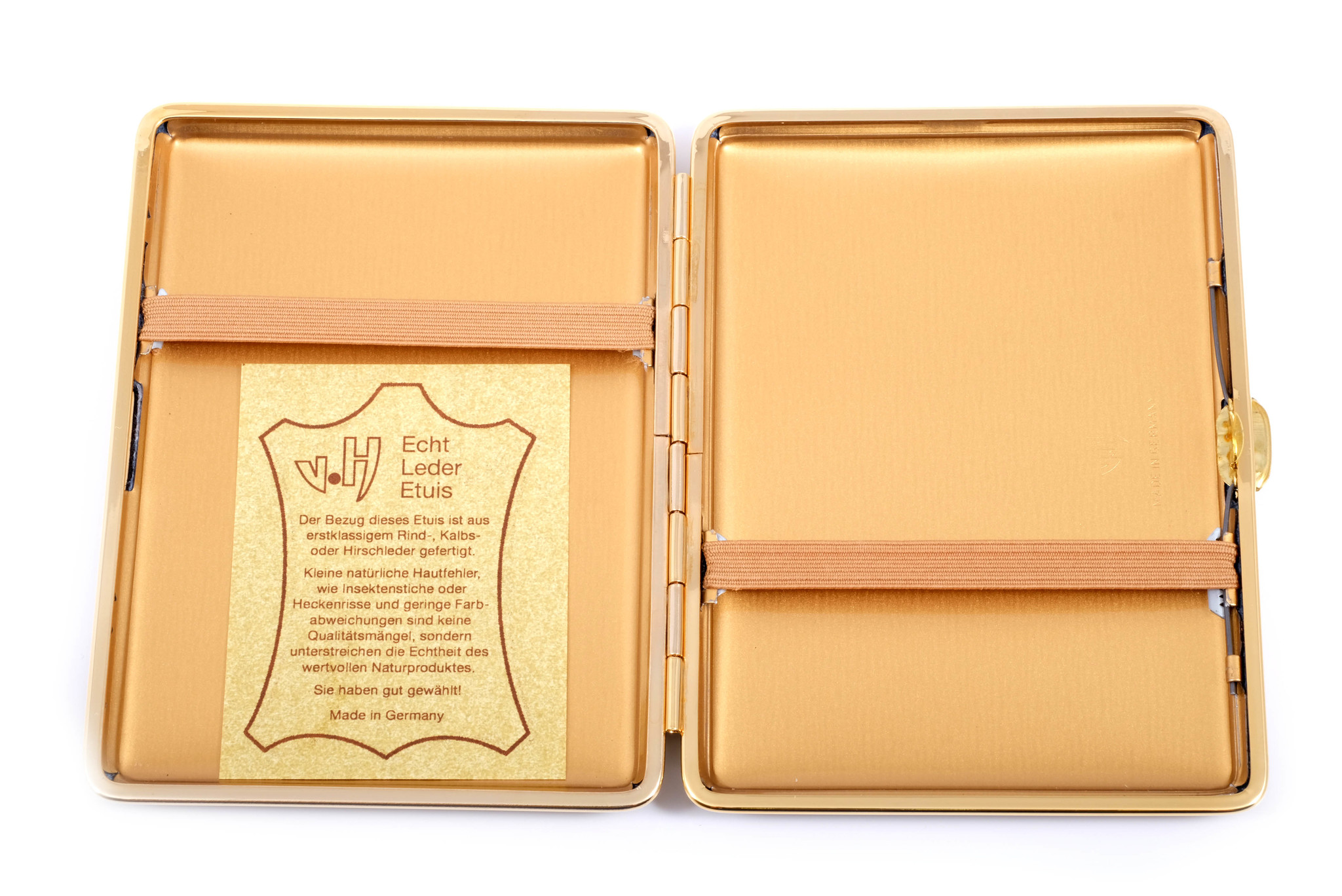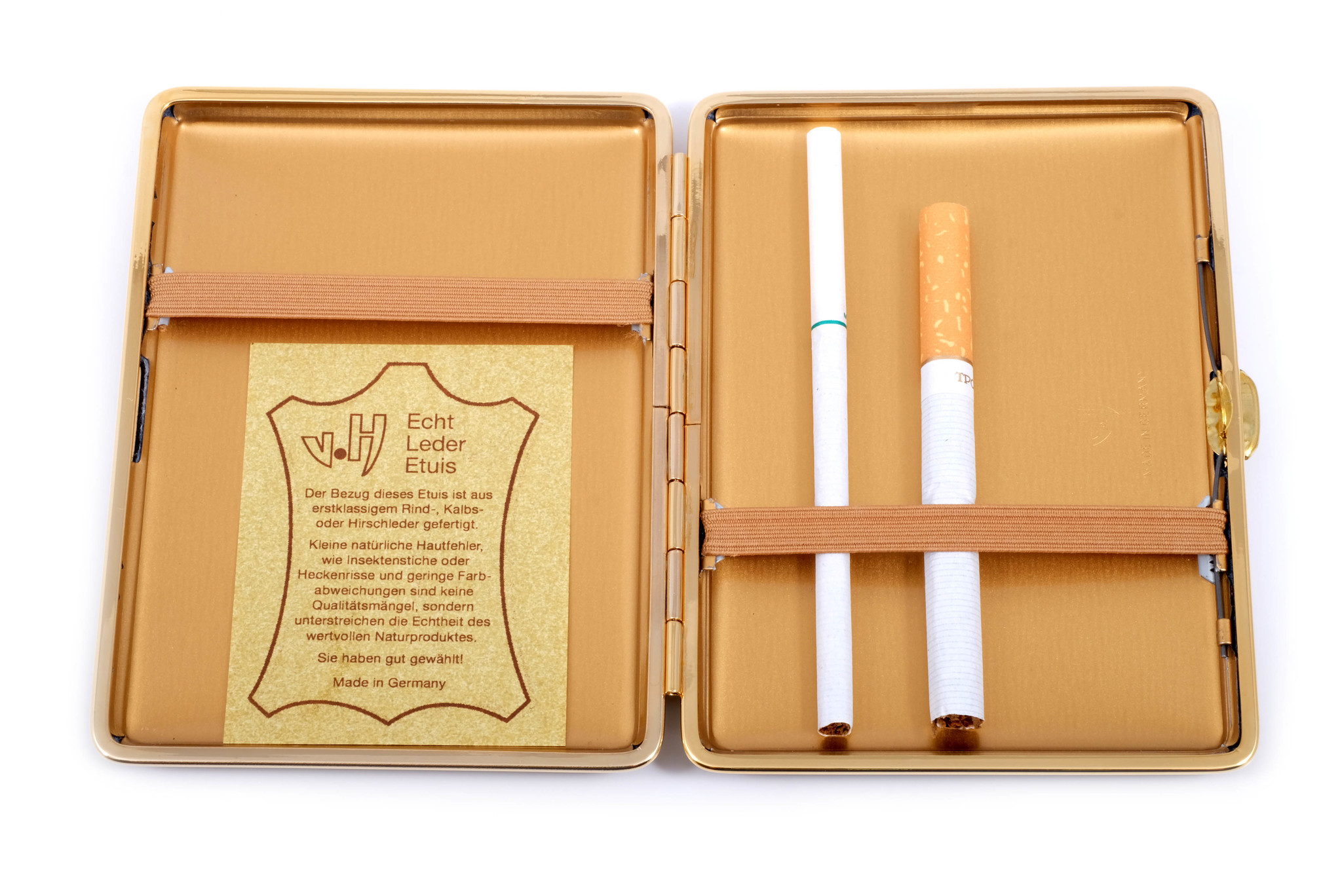 Все изделия данного производителя отличаются отменным немецким качеством, лучшими материалами и изысканным дизайном. Данный портсигар является идеальной альтернативой бумажной сигаретной пачке и не позволит вашим сигаретам помяться (или даже сломаться) в кармане. Вы получите огромное удовольствие от повседневного пользования этим продуктом. Портсигар легко закрывается простым захлопыванием одной рукой, для этого, закрывая его, слегка нажимайте большим пальцем на крышку портсигара в районе замка по направлению к защелке.