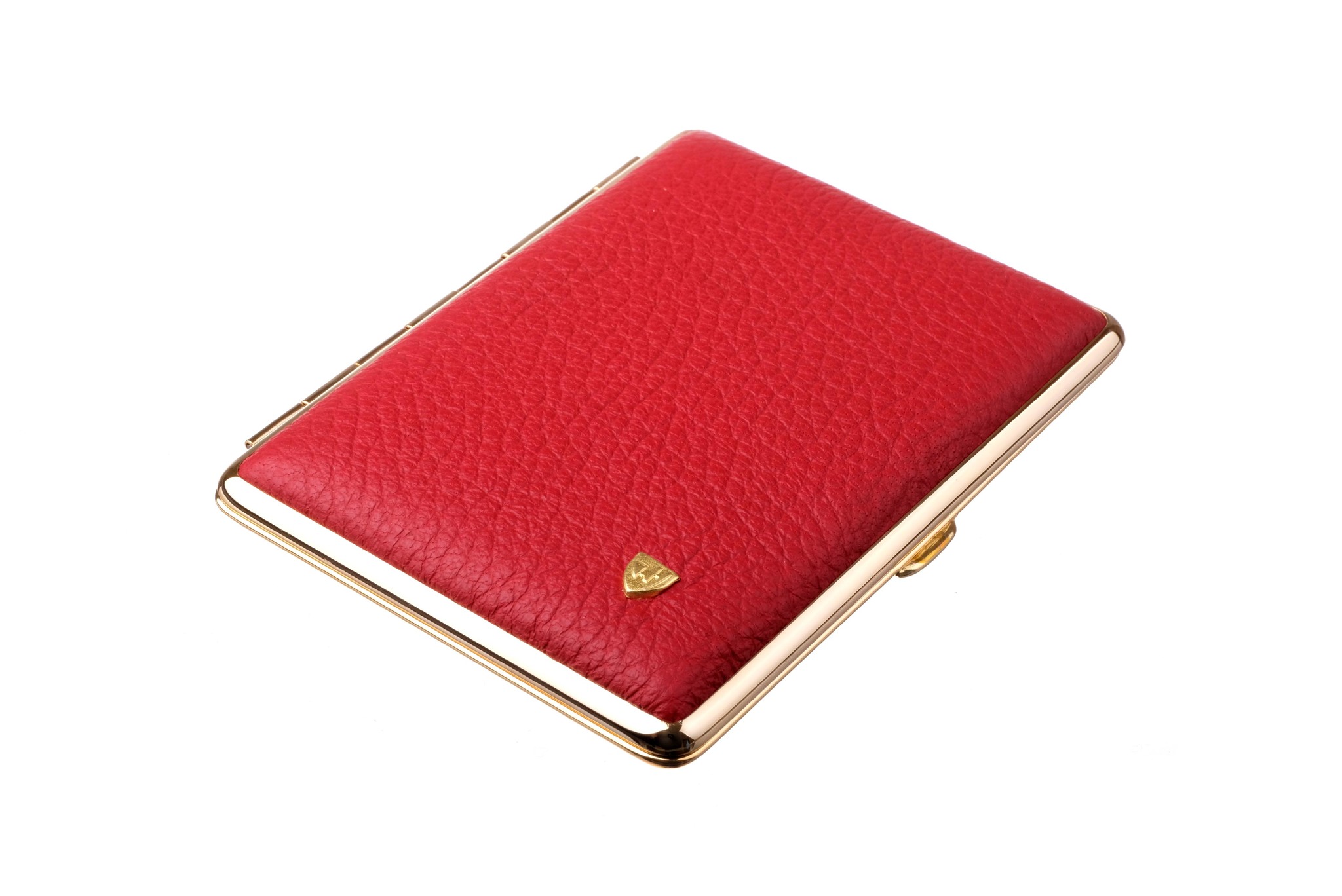 Портсигар Stoll на 28 сигарет 100 мм, натуральная кожа, Красный C19-3