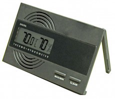 Очень тонкий цифровой гигрометр. Его размеры позволяют использовать его как в обычном хьюмидоре, так и в дорожном. Кроме того, его удобно использовать в хьюмидорном шкафу, т.к. прибор имеет откидную ножку. Показывает влажность и температуру. Обеспечивает очень точные показания в отличие от аналоговых гигрометров.