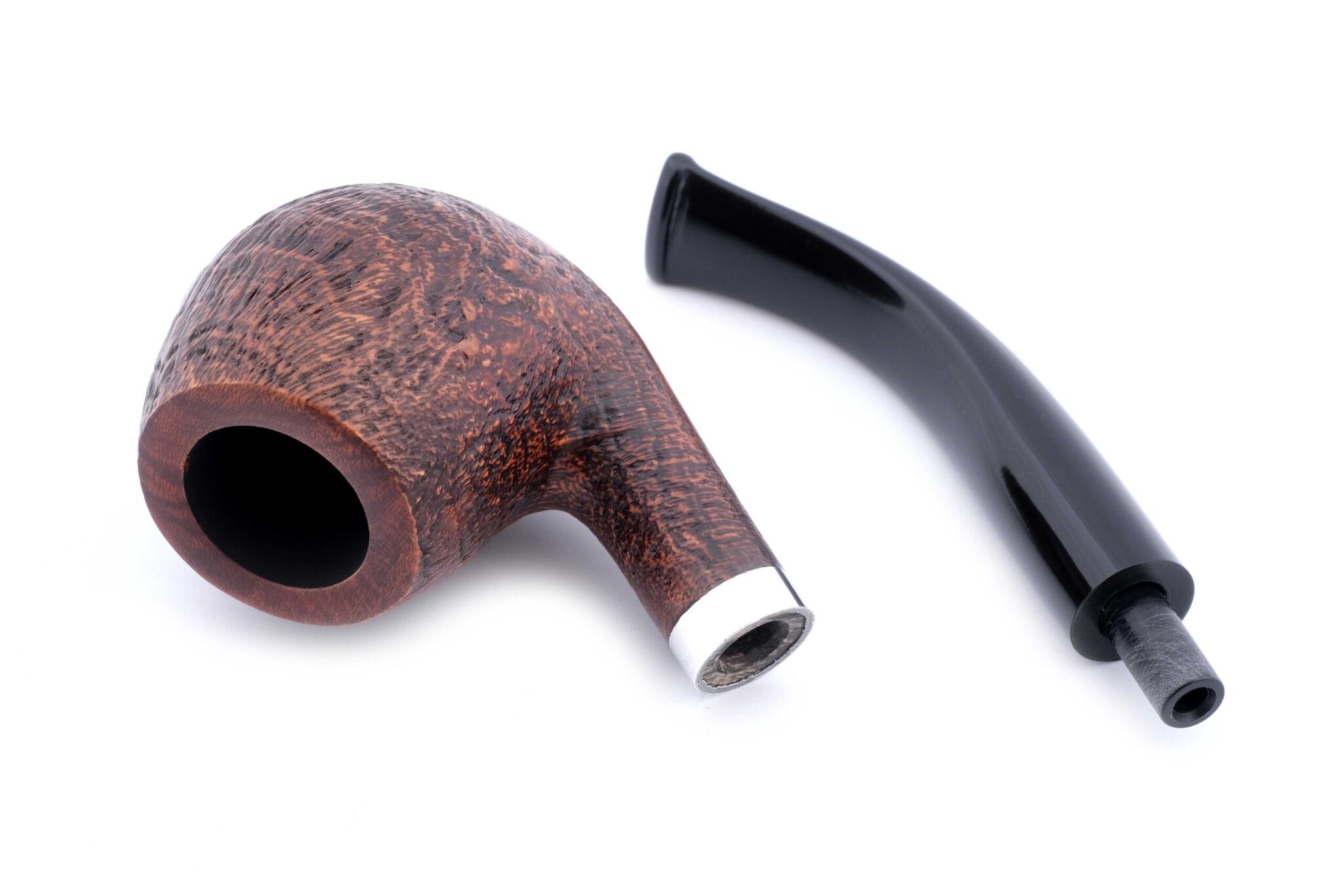 Трубка серии Eva из тосканской мастерской Чезаре Баронтини в Ливорно, Италия. Внешняя отделка Blast - струя измельченного в порошок стекла выбивает с поверности чашки мягкие частицы дерева и делает капилярный рисунок бриара объемным, ощутимым, не скрывая никаких дефектов.