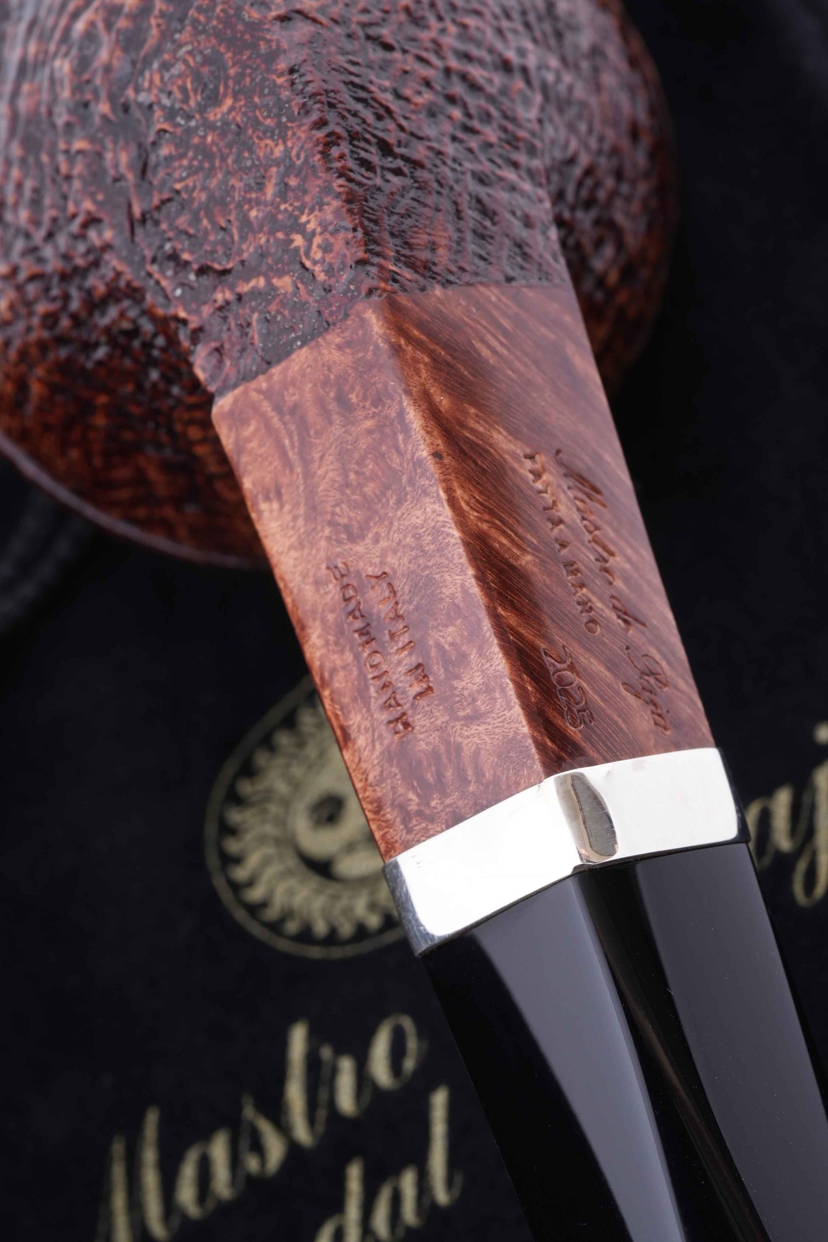 Классическая трубка из мастерской Мастро де Пайа. Принадлежит к лимитированной серии Unica 2025, где каждый экземпляр неповторим, имея свой индивидуальный дизайн.