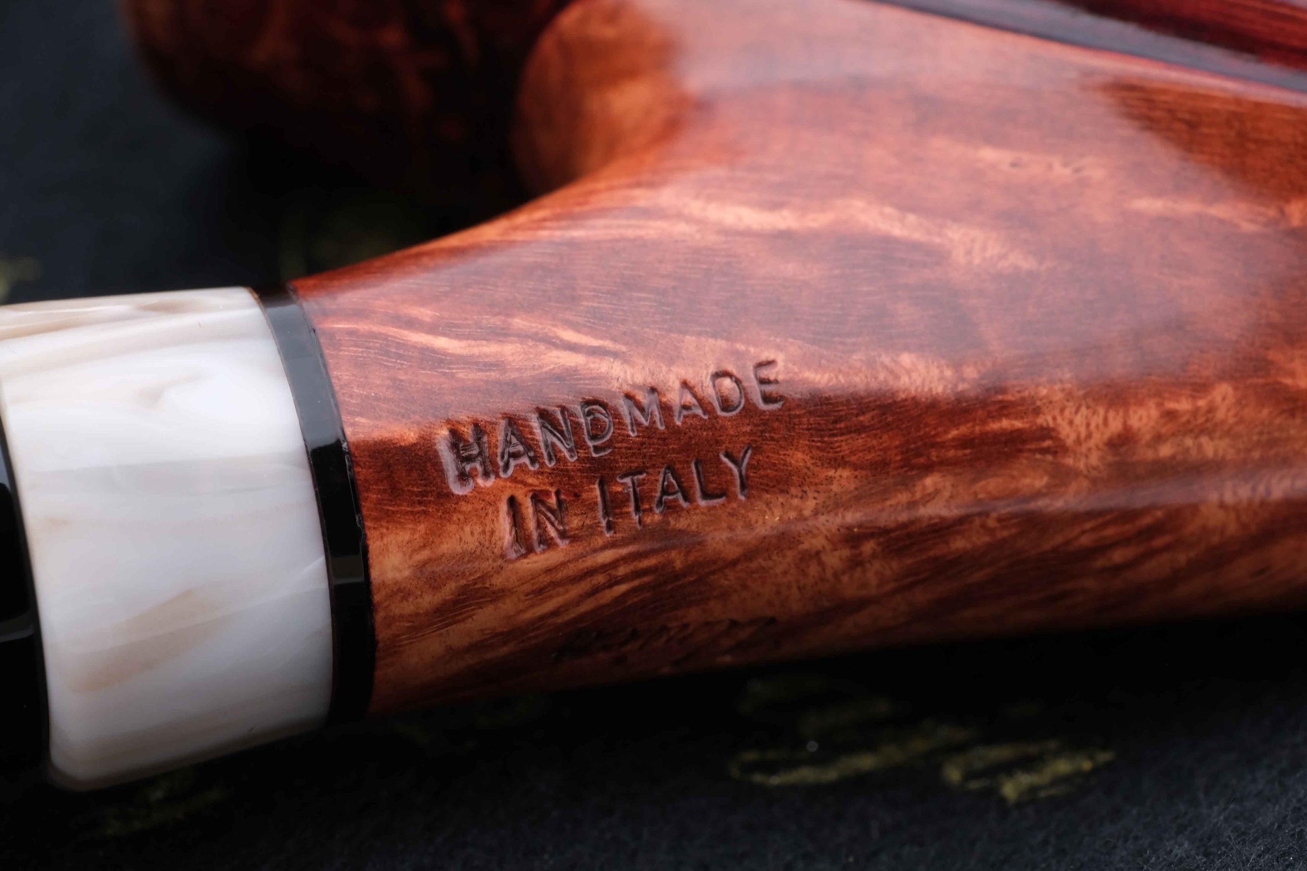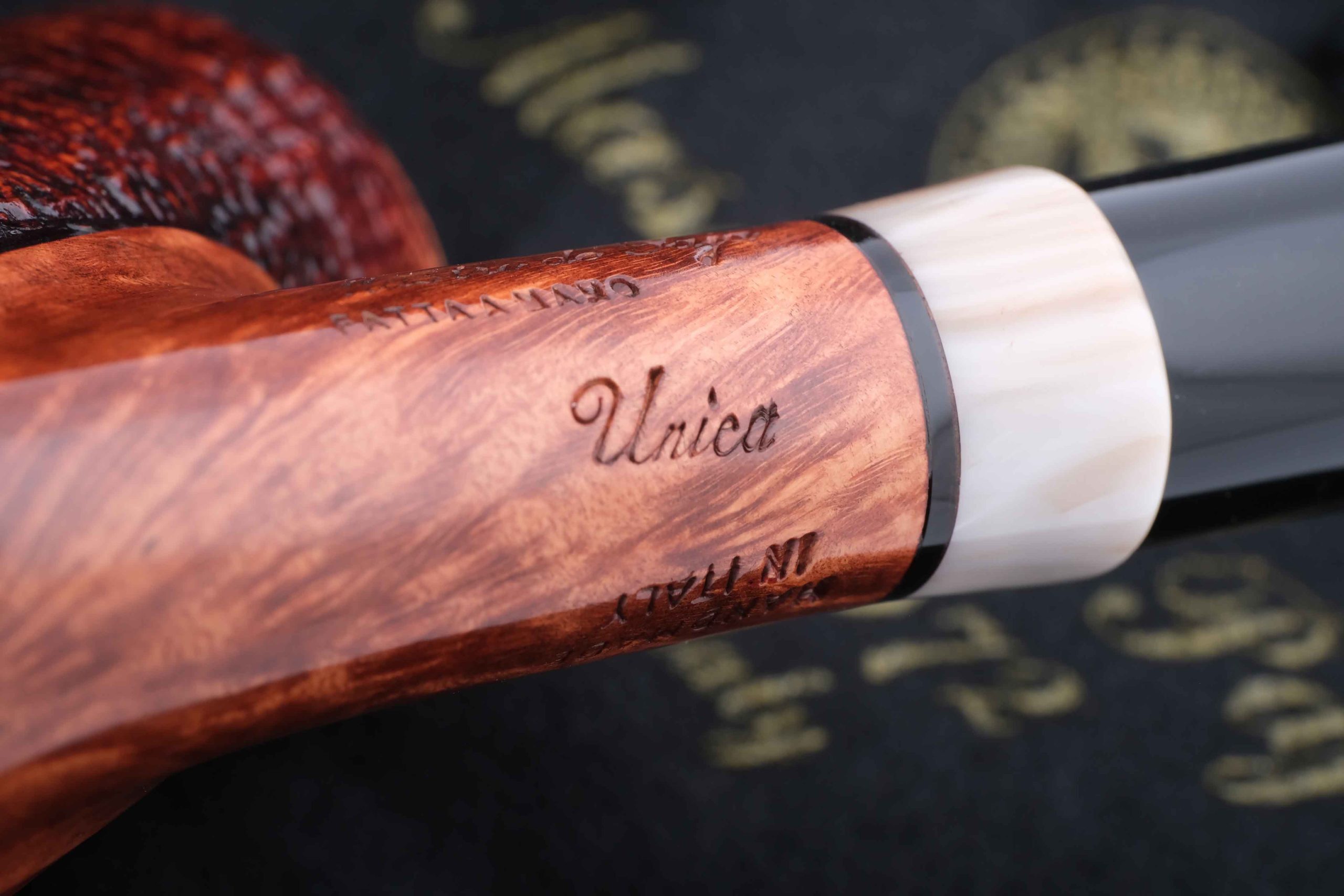 Легкая изящная трубка модели Stand-Up из мастерской Мастро де Пайа. Принадлежит к лимитированной серии Unica, где каждый экземпляр неповторим, имея свой индивидуальный дизайн.