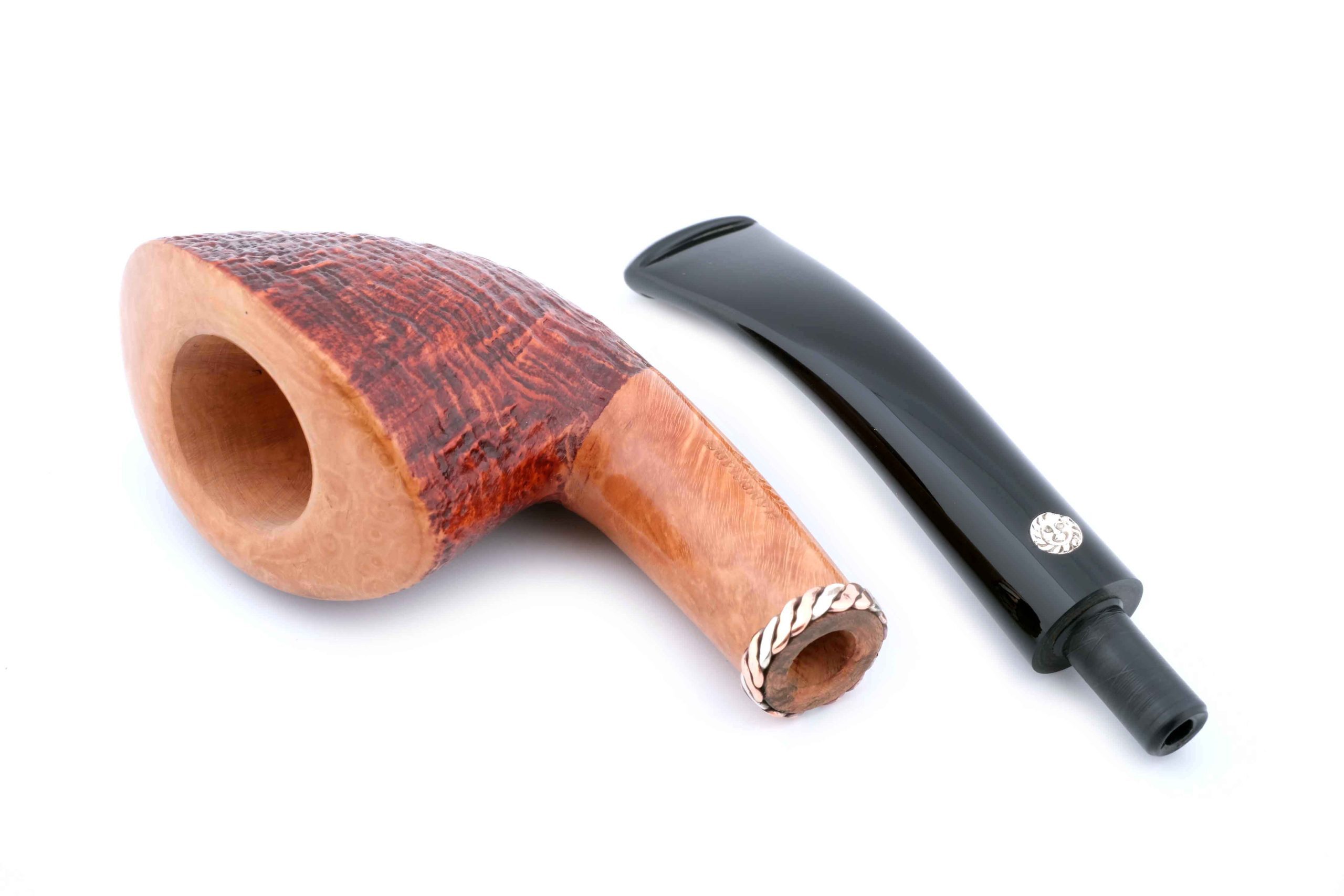 Легкая и изящная трубка из мастерской Мастро де Пайа. Принадлежит к лимитированной серии Unica, где каждый экземпляр неповторим, имея свой индивидуальный дизайн.