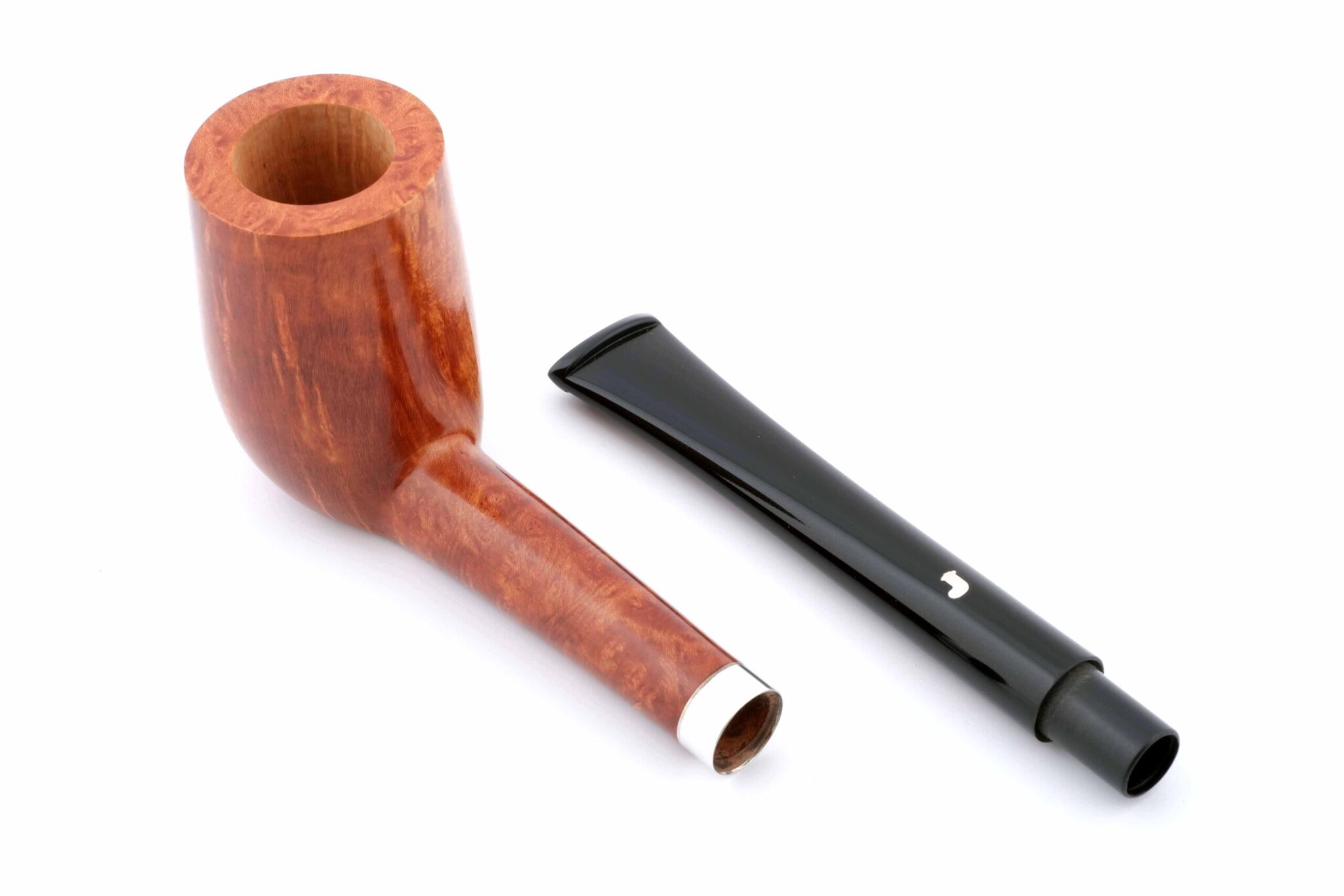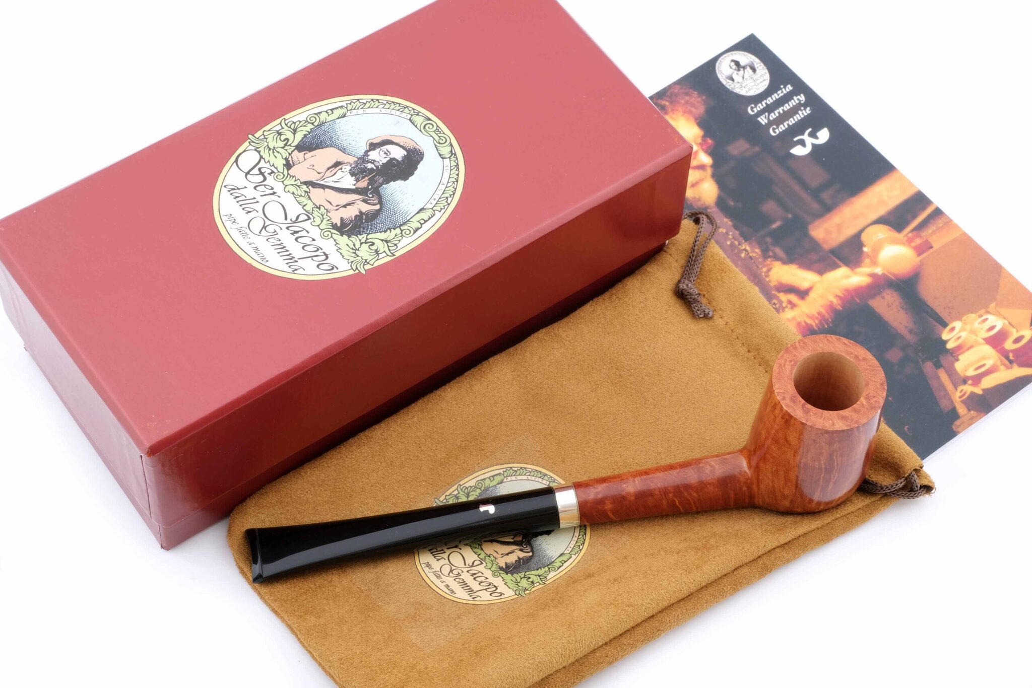 Легкая изящная курительная трубка высокого грэйда из мастерской Ser Jacopo. Благодаря плоскому основанию ее можно ставить на стол в паузах во время курения.