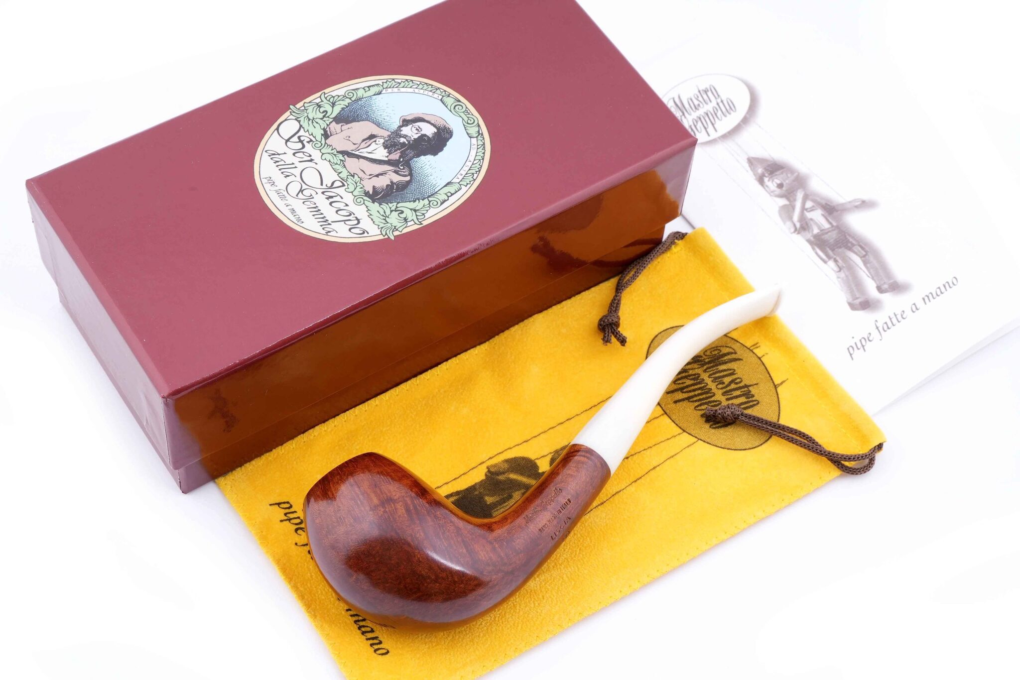 Авторская курительная трубка мастерской Ser Jacopo из серии Mastro Geppetto (Мастер Джузеппе, ит.). Серия посвящена всем итальянским резчикам по дереву в лице, пожалуй, самого известного из них — Мастера Джузеппе, создателя и отца Пиноккио из одноименной сказки Карло Коллоди.