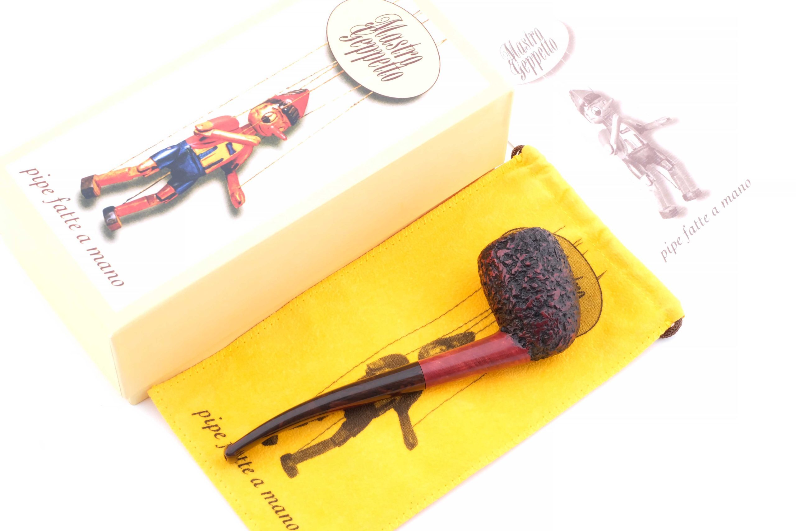 Очень легкая курительная трубка мастерской Ser Jacopo из серии Mastro Geppetto (Мастер Джузеппе, ит.). Серия посвящена всем итальянским резчикам по дереву в лице, пожалуй, самого известного из них — Мастера Джузеппе, создателя и отца Пиноккио из одноименной сказки Карло Коллоди.