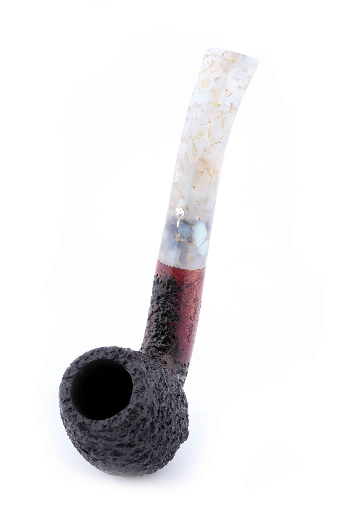 Серия оформлена в бело-желтых цветах парика, который носил Джузеппе, а вместо значка J (Jacopo) на мундштуке используется профиль Пиноккио из серебра 925 пробы. Также изображение самой известной итальянской куклы присутствует на серебряных кольцах и упаковке. Большинство трубок этой серии выполнено в технике рустирования (Rusticato), которая до сих пор выполняется ручными резцами, требует времени, силы и, конечно, мастерства резчика.В комплекте подарочная коробка, кисет для трубки и буклет компании Ser Jacopo. Ручная работа, единственный экземпляр.