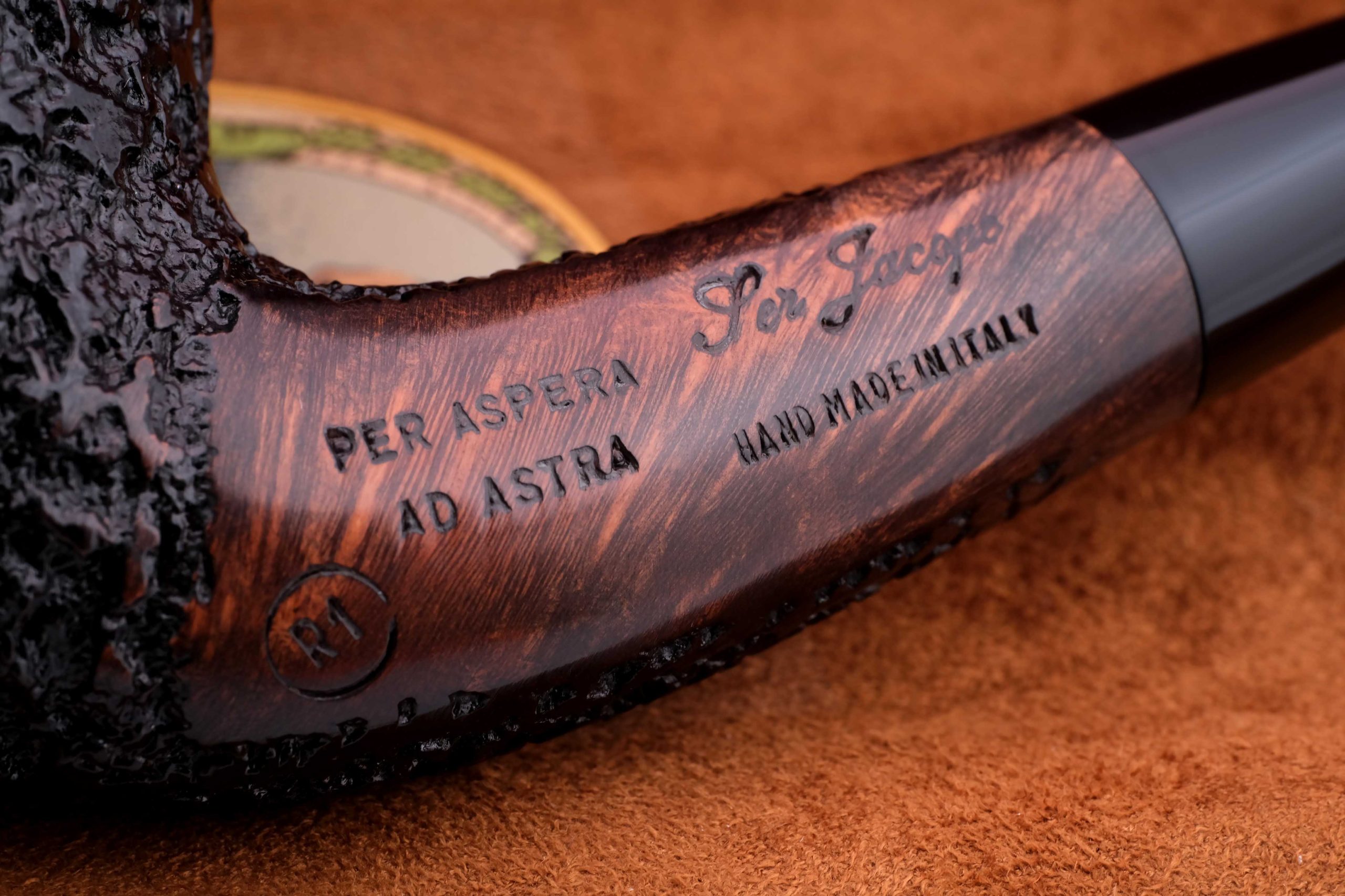 На трубке выбит девиз мастерской Ser Jacopo PER ASPERA AD ASTRA («Через тернии к звездам», лат.), маркировки: Ser Jacopo, Hand made in Italy, грэйд R1.