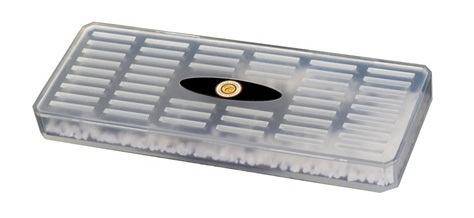 Большой увлажнитель прямоугольной формы с гелевыми кристаллами. Кристаллы содержат пропиленгликоль, который предотвращает образование плесени и поддерживает уровень влажности в хьюмидоре на уровне 70%. Заправляется только дистиллированной водой. Готов к употреблению за 4 часа. Расчитан на хьюмидоры средней и большой вместимости 50-120 сигар. Крепится на внутри хьюмидора с помощью магнита.