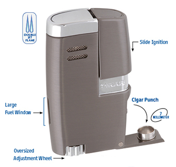 Эта элегантная зажигалка с двойным турбо-пламенем. Для удобства пользования снабжена 7 мм пробойником.