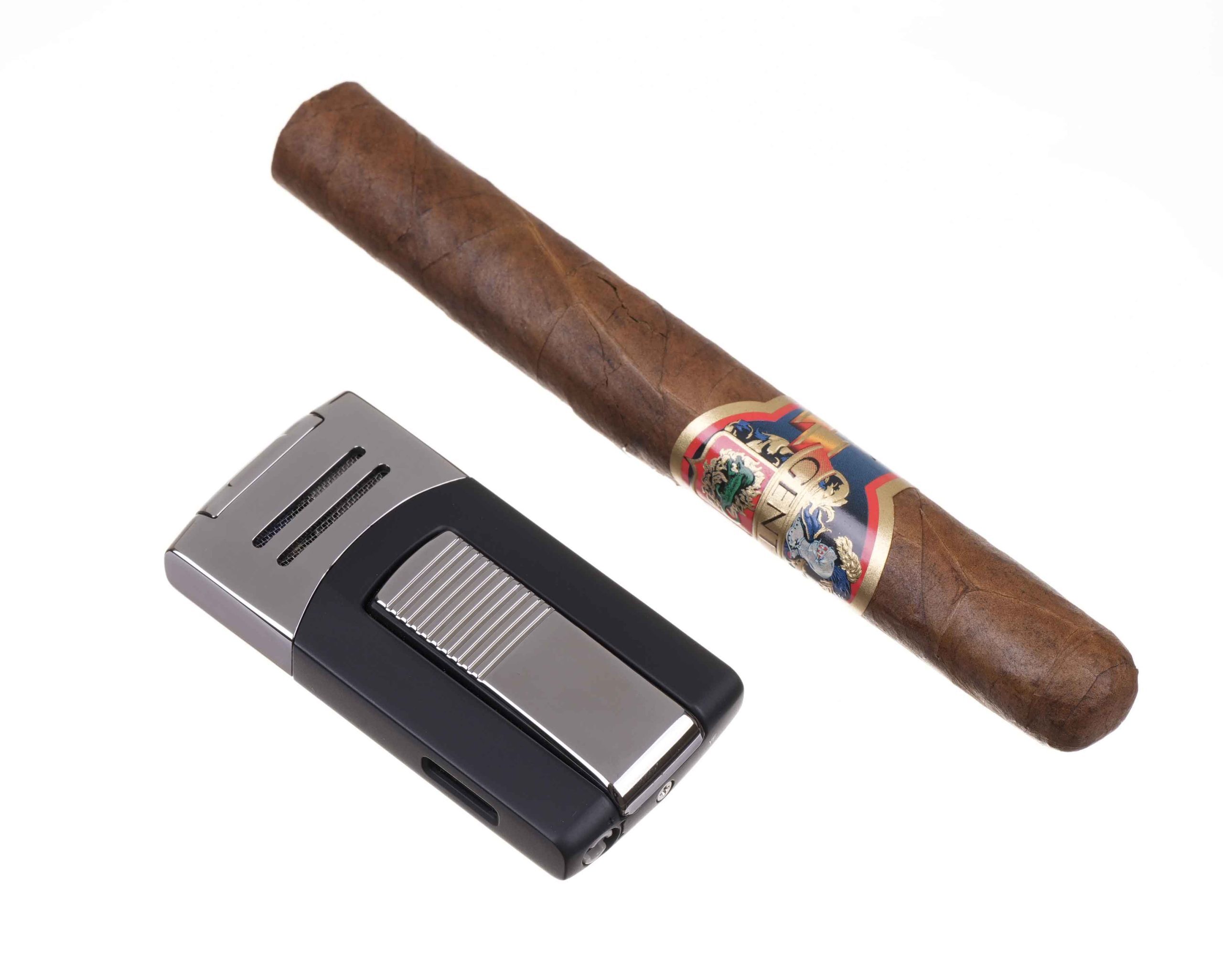 Сигарная турбо-зажигалка с плоским корпусом французского бренда Caseti. Подходит для розжига сигар благодаря мощному турбо-пламени.