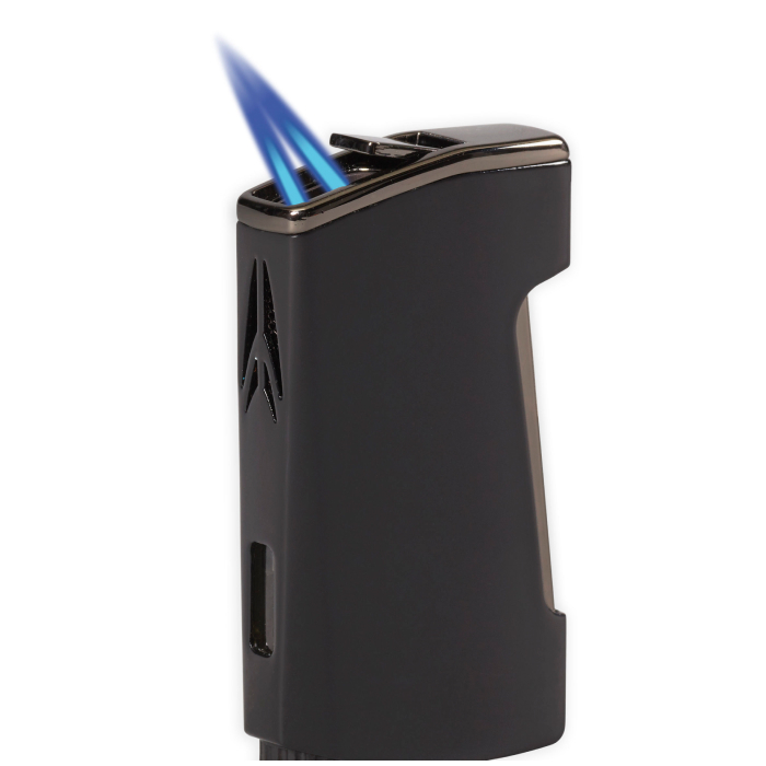Две турбины, пламя устойчиво к ветру, зажигалка имеет окошко уровня топлива, цельнометаллический корпус, встроенный дырокол для сигар 8мм, фонарик.
