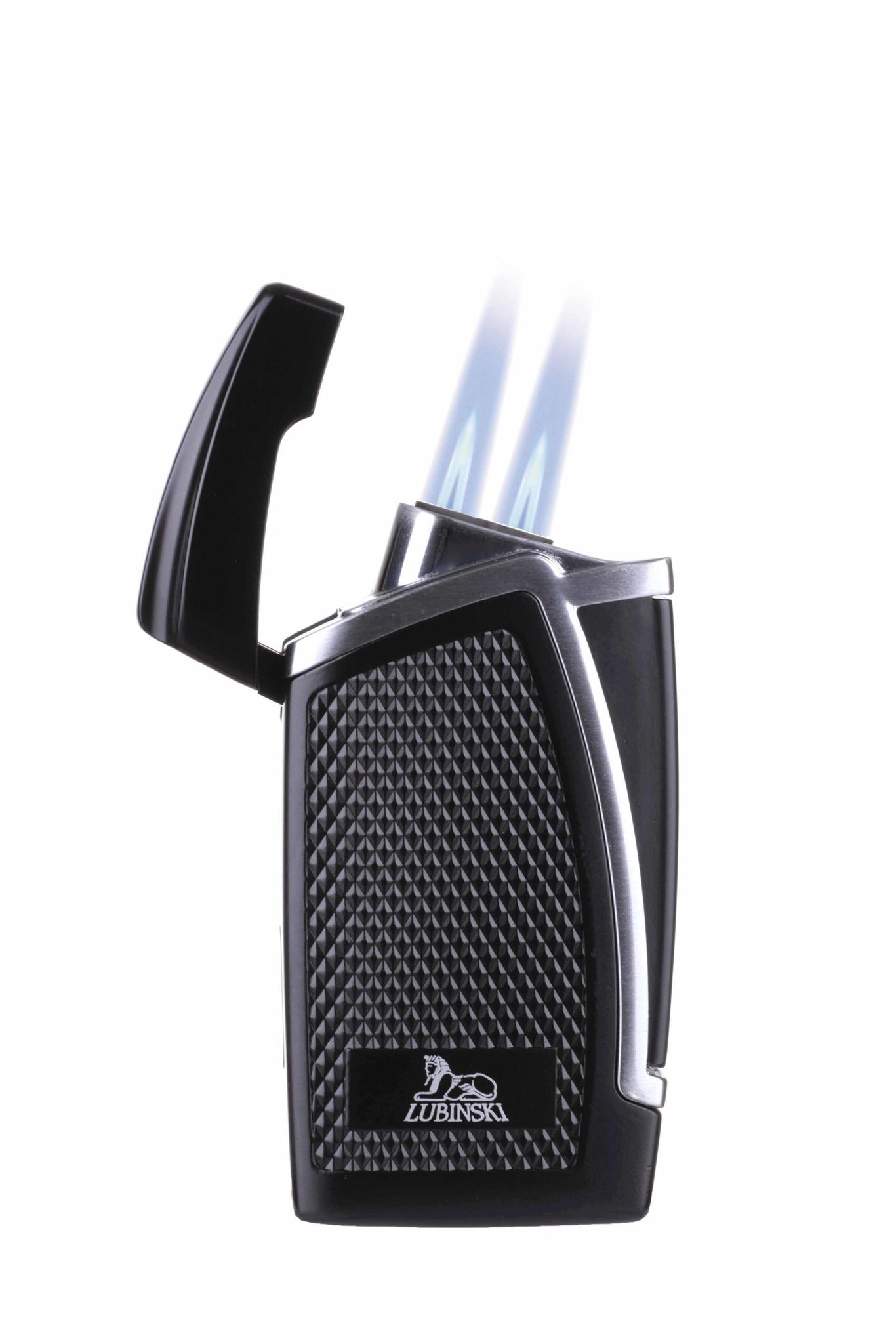 Зажигалка Lubinski "Дрэгон" турбо, двойное пламя, черно-серебристая