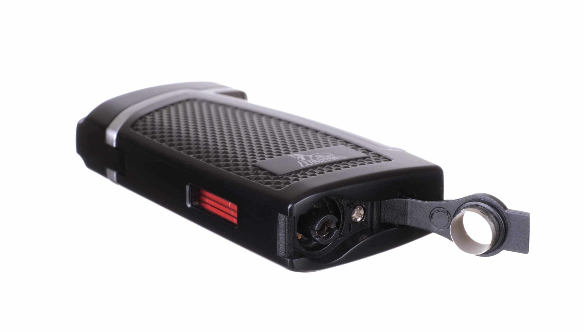 Новая модель сигарной газовой турбо-зажигалки от итальянской компании Lubinski SRL. Мощное двойное пламя пирамидальной формы разгорается при одном нажатии кнопки, топливное окно окрашено в красный цвет и расположено на боковой стороне корпуса для моментального считывания уровня газа. Эргономичный корпус с насечкой удобно лежит в руке. Имеет откидной пробойник диаметром 8 мм. В комплекте поставки подарочная коробка.