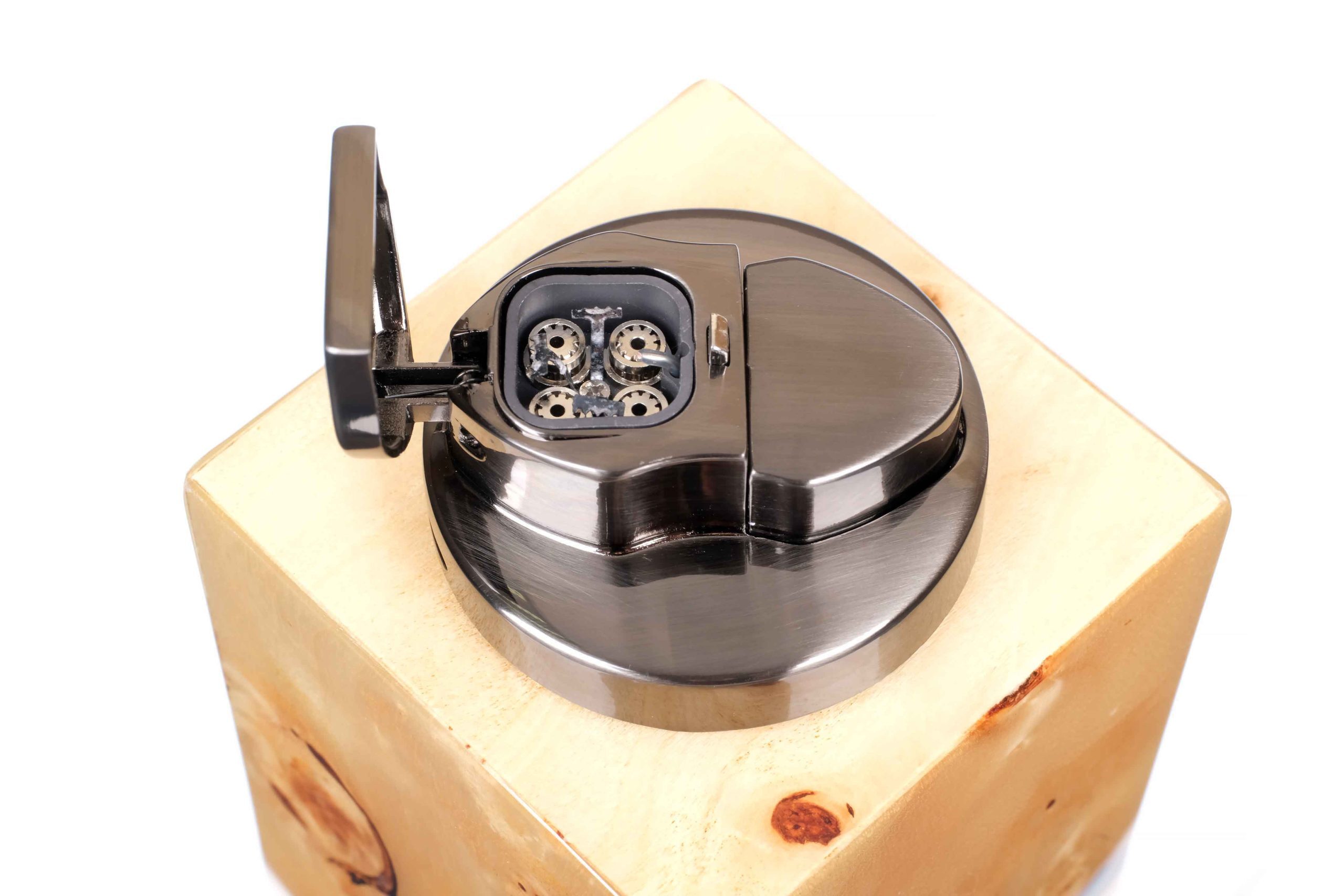 Зажигалка настольная премиум-класса от американской компании Howard Miller - известного производителя предметов интерьера. Турбо-механизм газовой зажигалки с 4-мя соплами дает мощное красивое пламя и идеально подходит для прогрева и раскуривания сигар. Для заправки газом и регулировки пламени механизм вынимается из основания. Деревянный корпус отделан ценным шпоном из капа (прикорневого нароста) Черного европейского тополя и покрыт глянцевым лаком. Поставляется в подарочной упаковке. Для настольного сигарного набора идеально сочетается с хьюмидорами Howard Miller и сигарной пепельницей Howard Miller в корпусе из того же дерева.