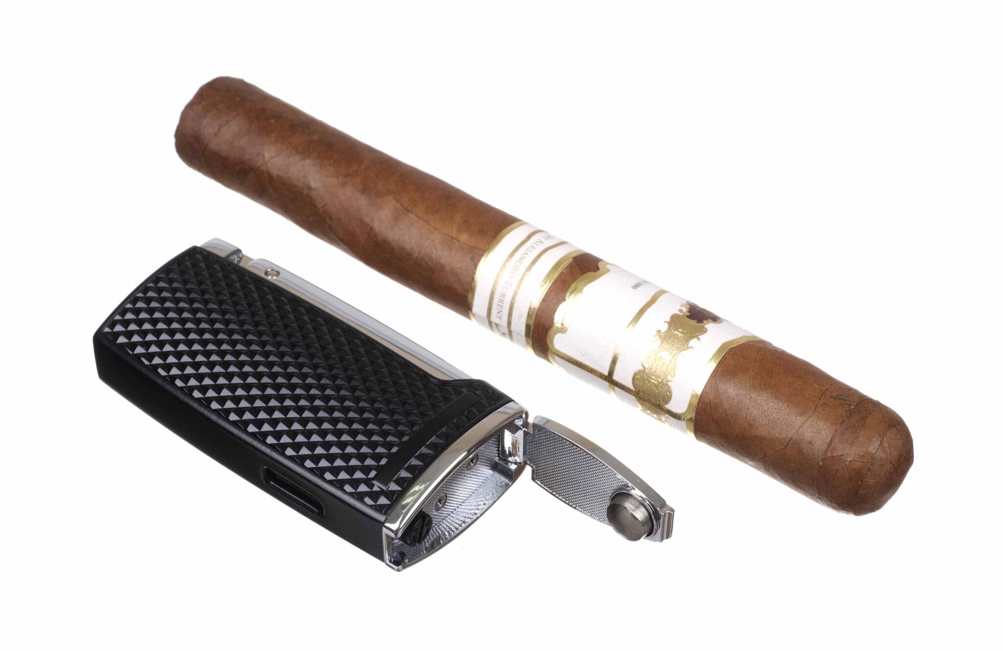 Сигарная газовая зажигалка Passatore с мощным тройным турбо-пламенем и встроенным пробойником диаметром 8 мм.