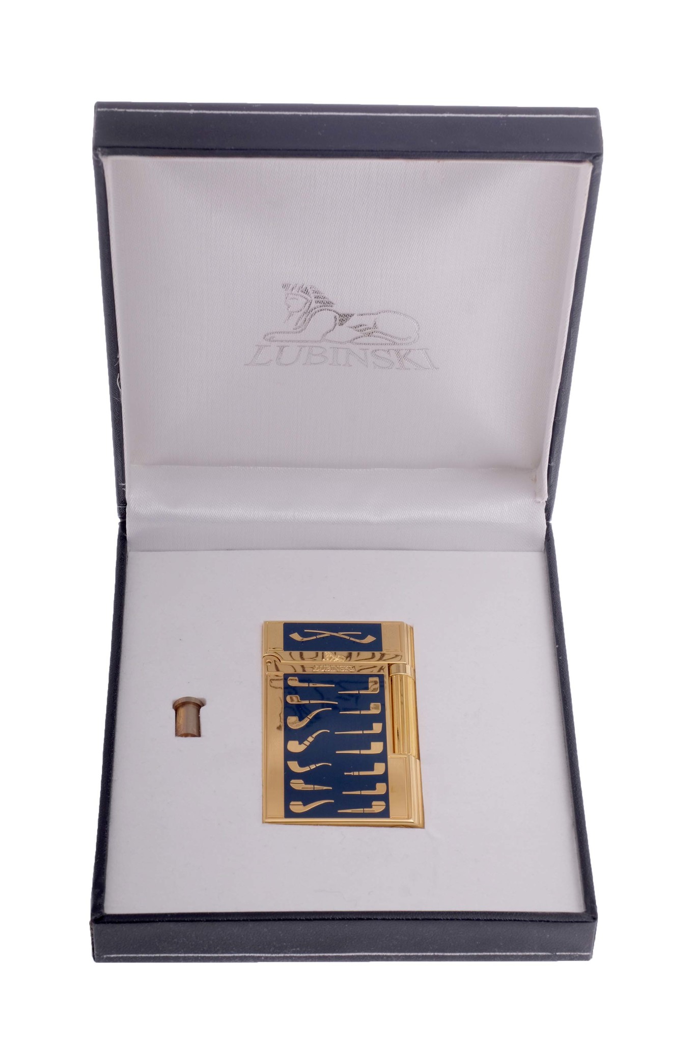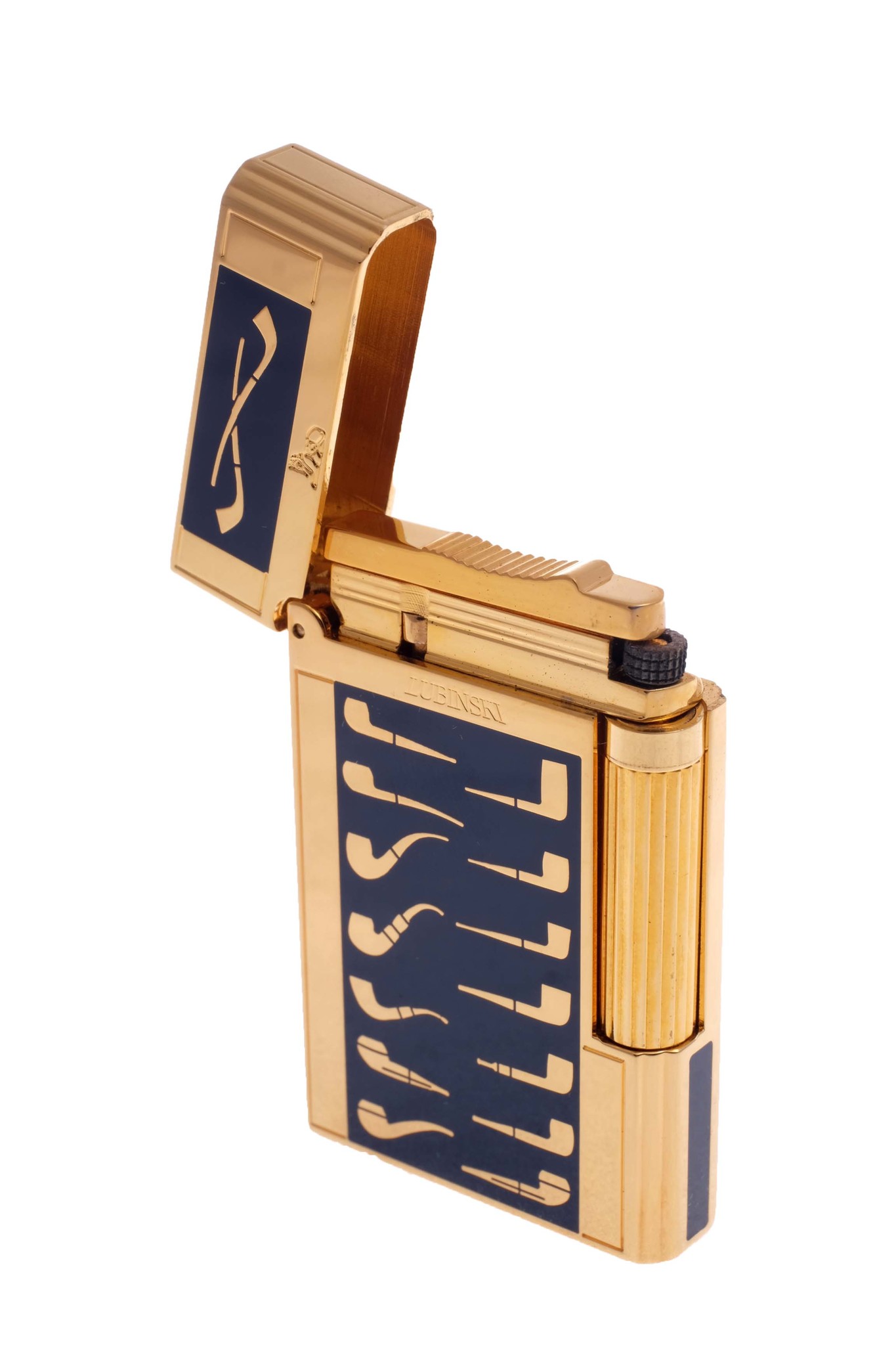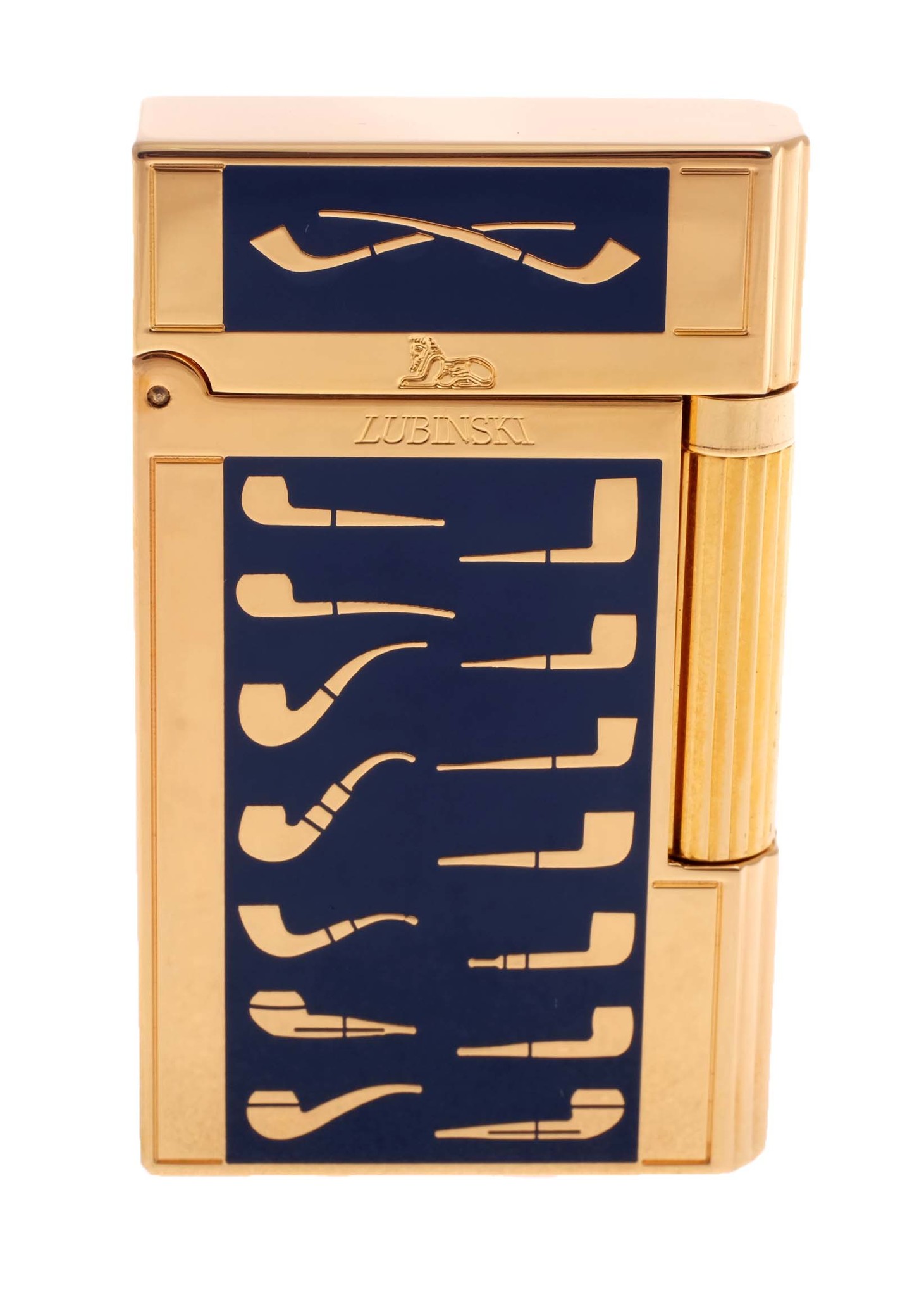 Стильная зажигалка для курительных трубок от итальянского производителя Lubinski. Инкрустирована изображениями трубочных шейпов.