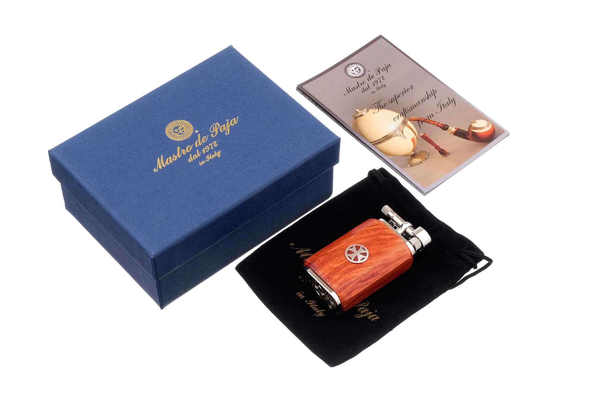 Трубочная газовая зажигалка с надежным кремневым механизмом поджига. Изделие премиум-класса от итальянских мастеров из компании Mastro de Paja, всемирно известной своими курительными трубками и аксессуарами.