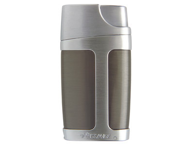 Это одна из  самых популярных зажигалок с  легким воспламенением, сильного двойного реактивного пламени и гладкого стиля.  Нажатие на кнопку  спускового механизма открывает защитную кепку и зажигает два сильных реактивных пламени. Колесо топливного расходомера и регулирования гарантирует правильное количество пламени.