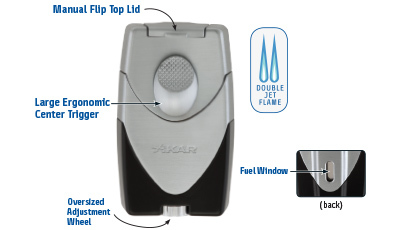 Enigma (Загадка) имеет легкий  захватывающий механизм для самого проницательного потребителя. Автоматическая открываемая щелчком кепка вершины  защищает сильный двойной реактивный огонь , в то время как спусковой механизм,расположенный в центре оставляет большой палец далеко от высокой температуры.